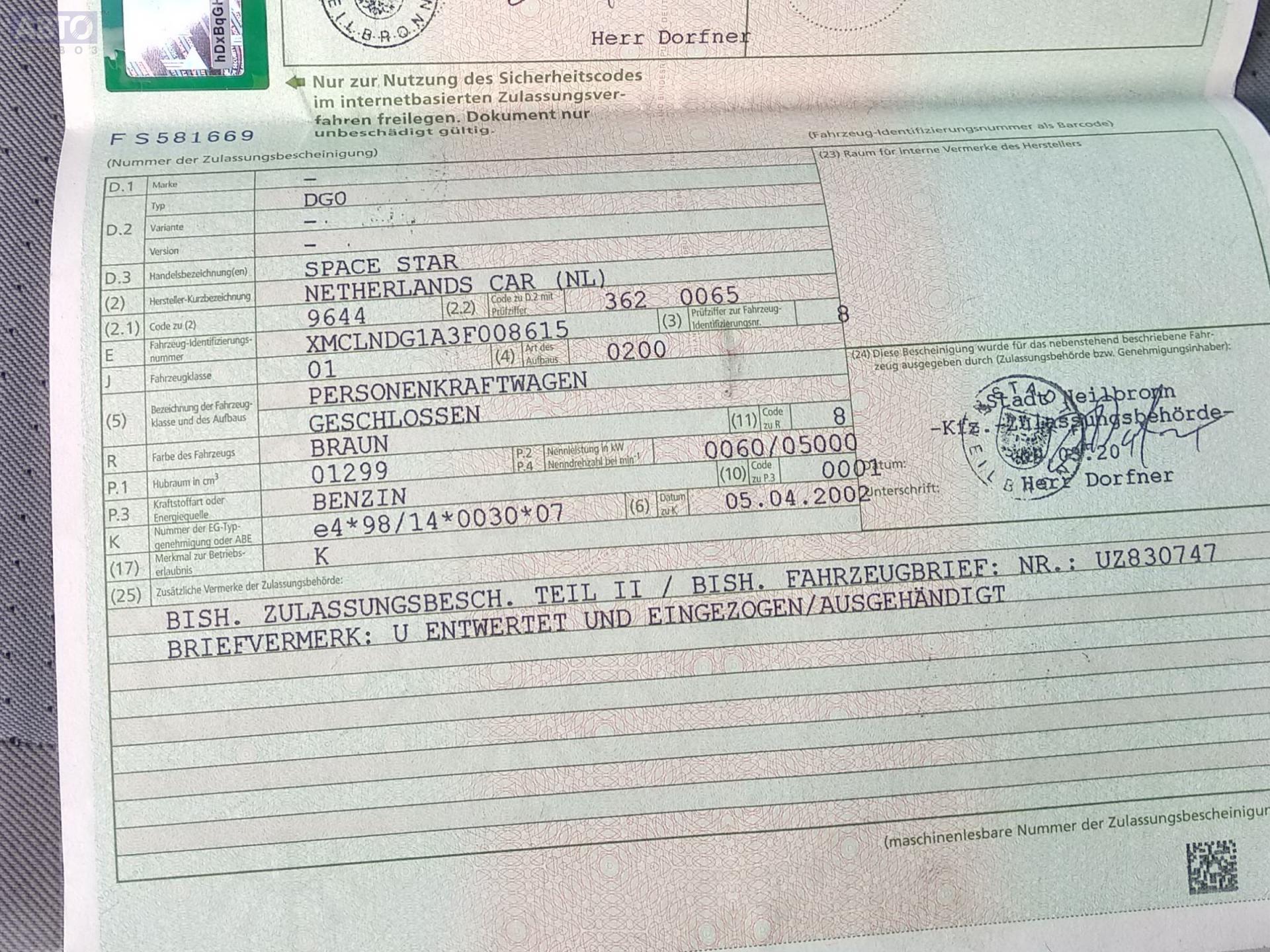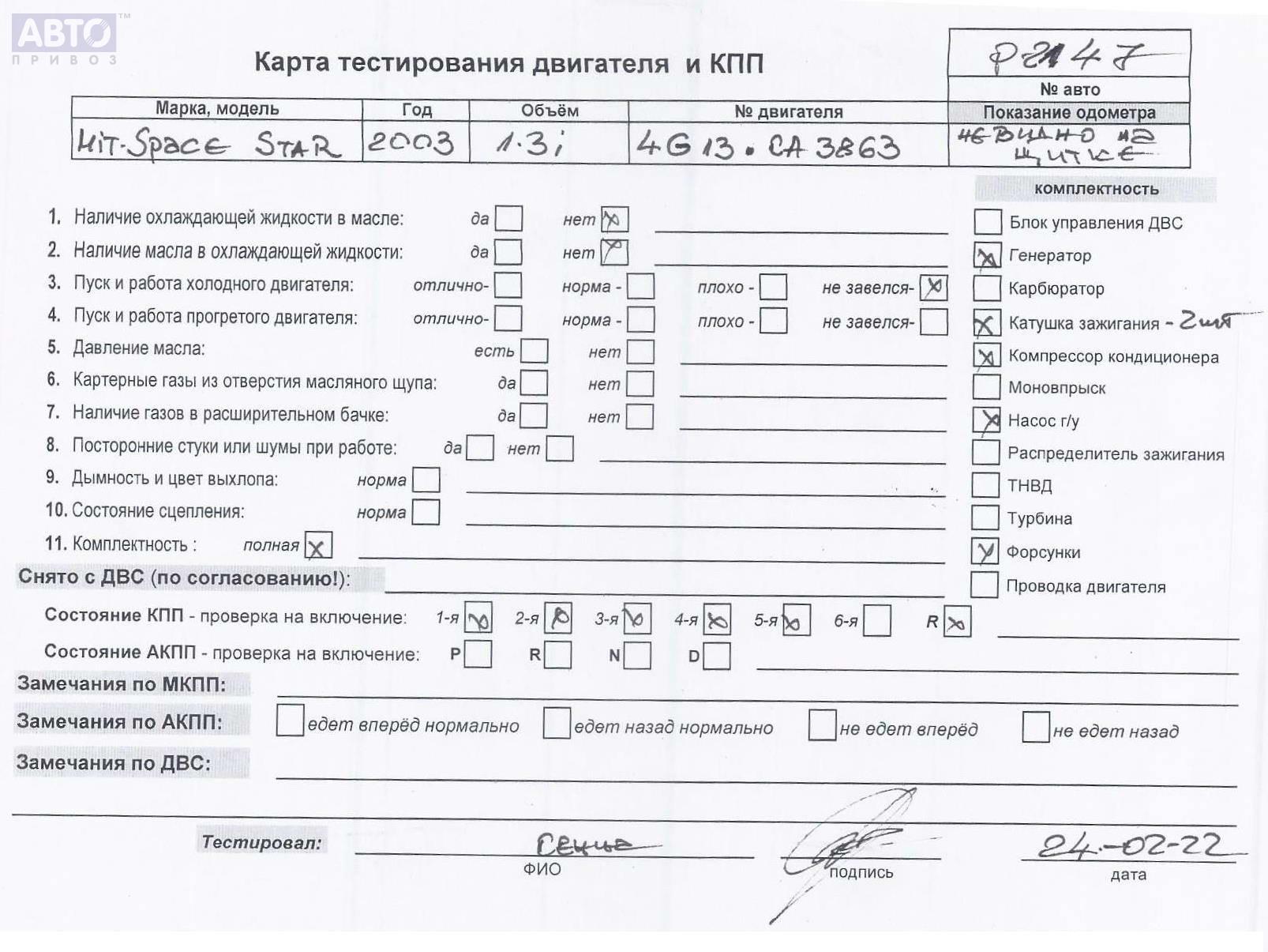 | Марка / Модель / Год: | Mitsubishi Space Star (1998-2005) 2002 |