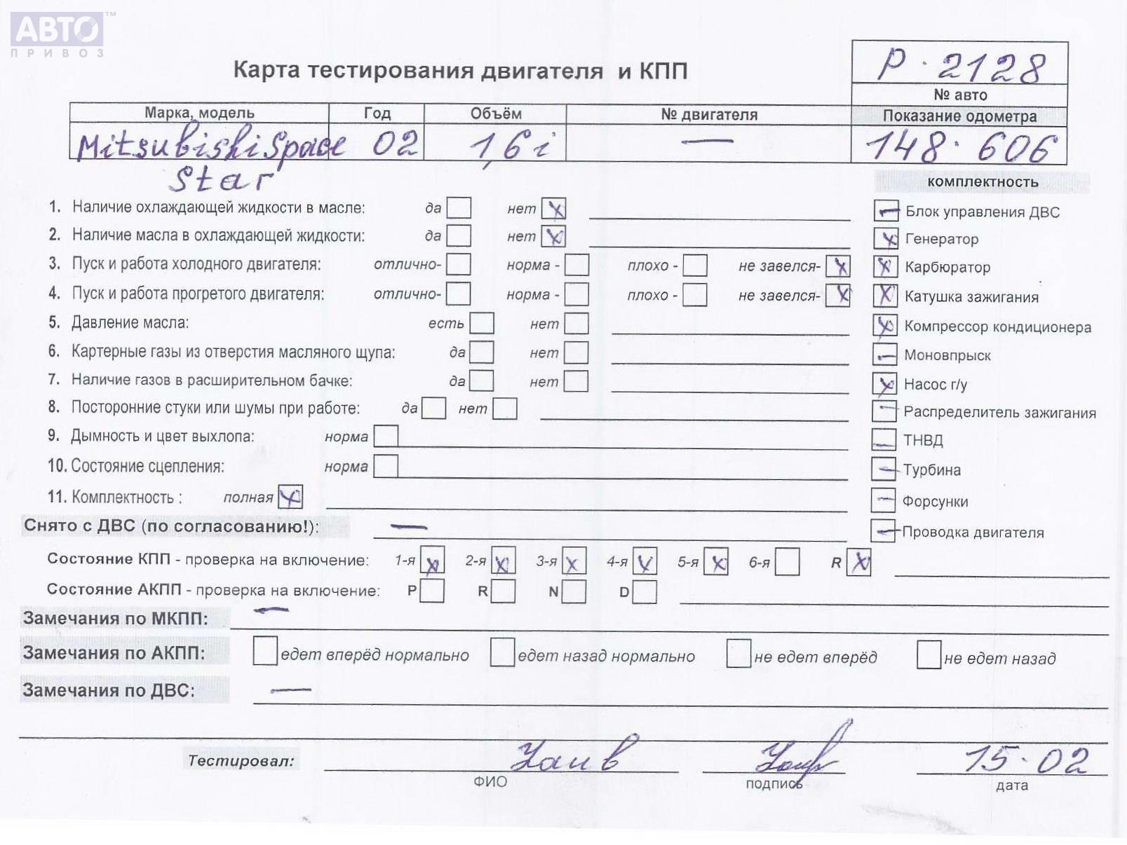 | Марка / Модель / Год: | Mitsubishi Space Star (1998-2005) 2002 |