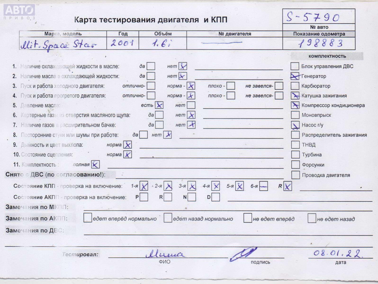 | Марка / Модель / Год: | Mitsubishi Space Star (1998-2005) 2001 |