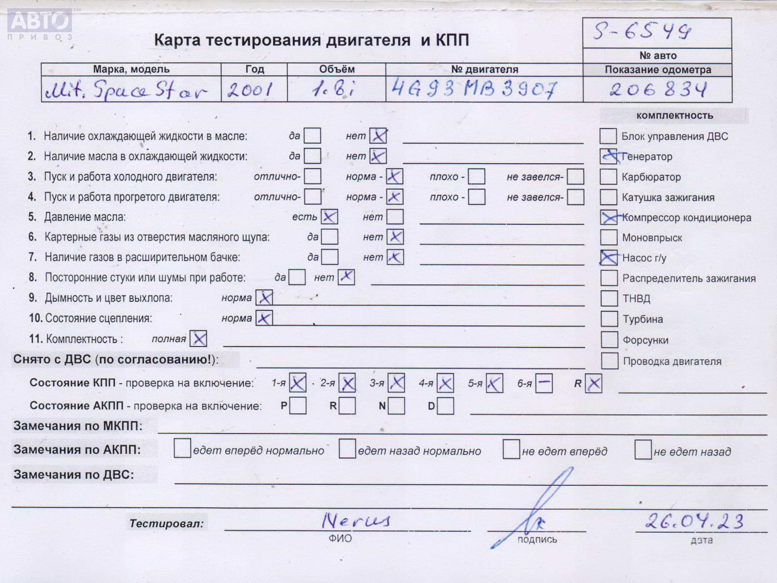 | Марка / Модель / Год: | Mitsubishi Space Star (1998-2005) 2001 |