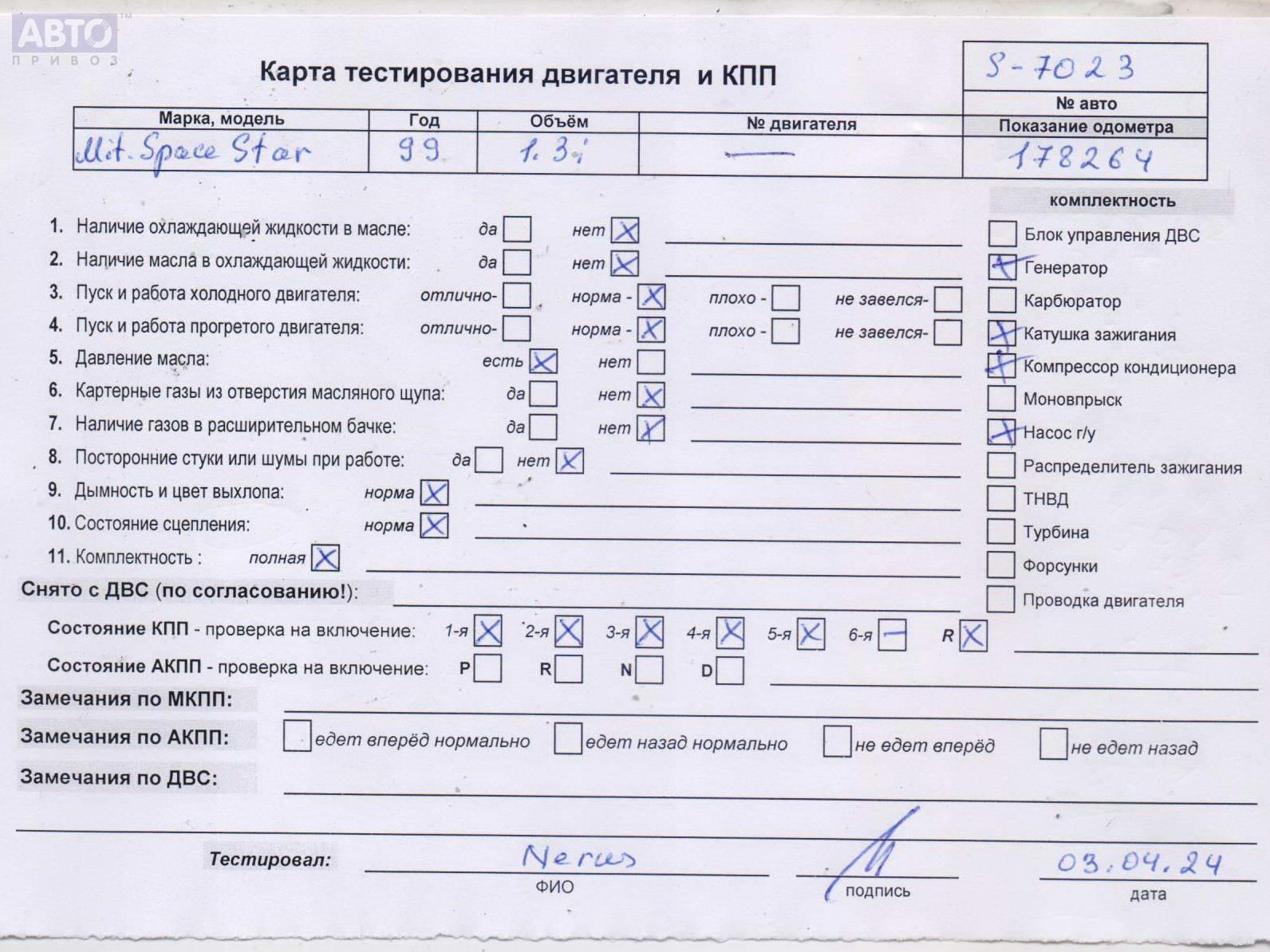 | Марка / Модель / Год: | Mitsubishi Space Star (1998-2005) 1999 |