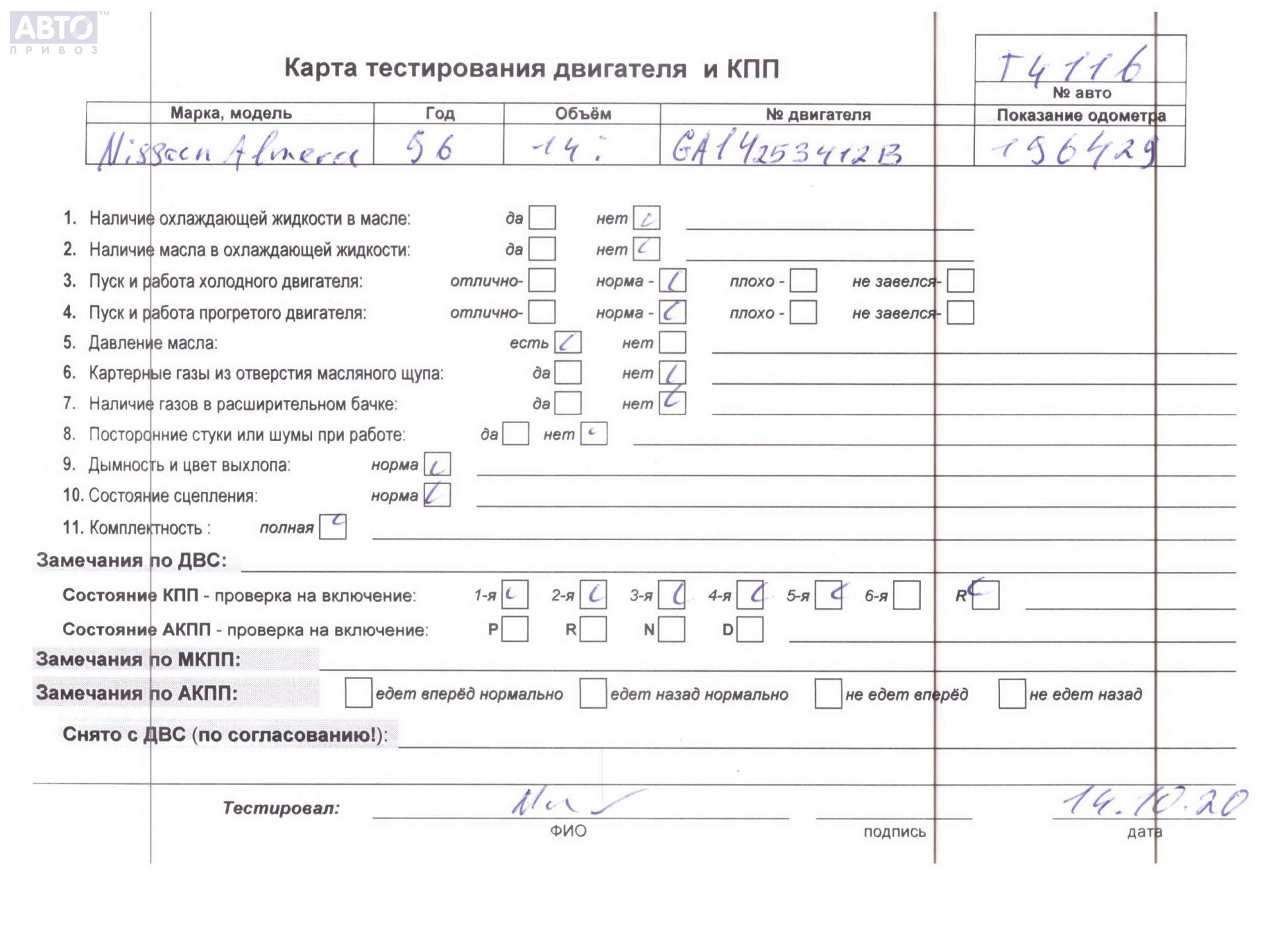 | Марка / Модель / Год: | Nissan Almera N15 (1995-2000) 1996 |