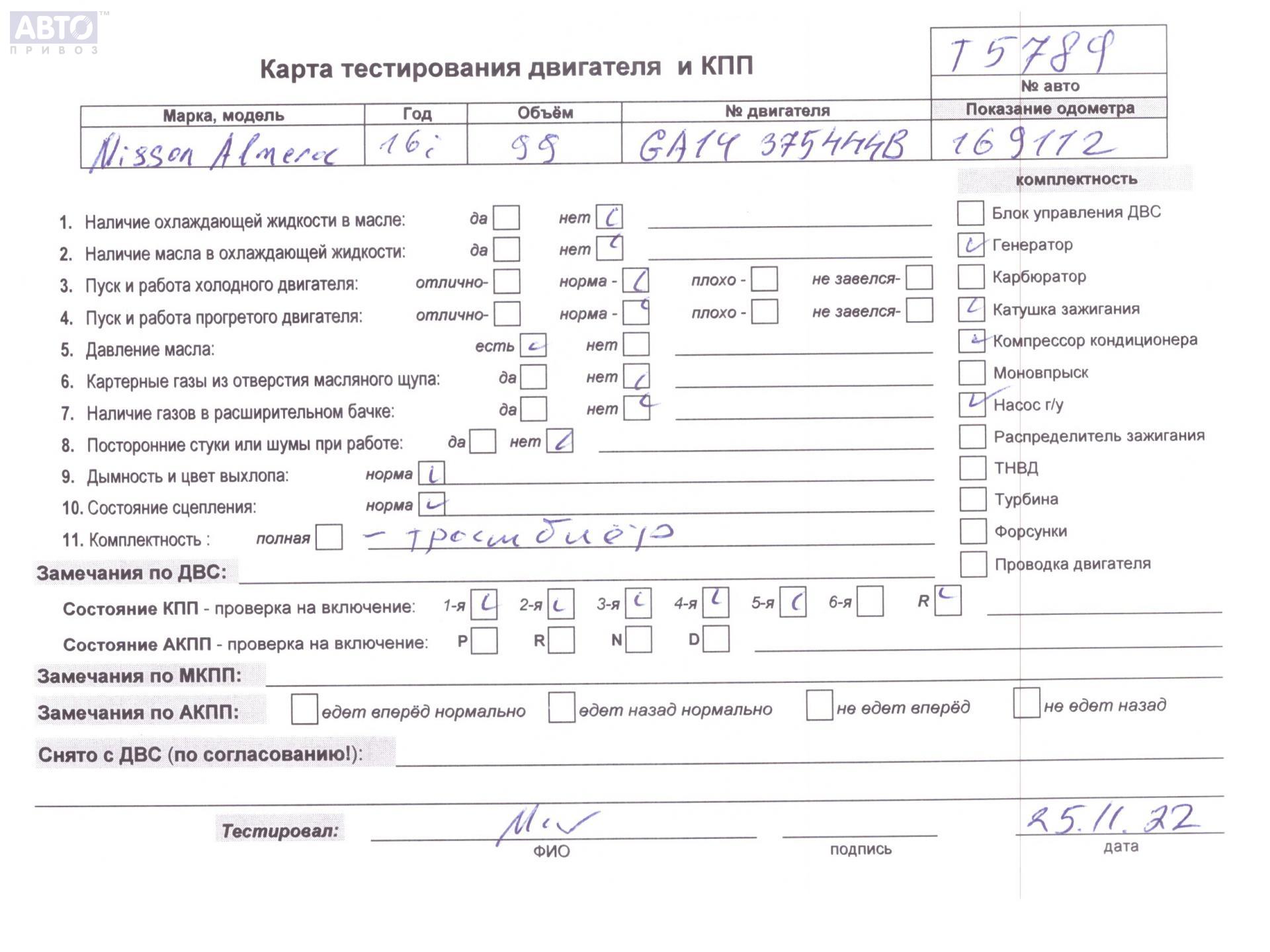| Автомобиль / VIN: | T5789 JN1EAAN15U0587291 |