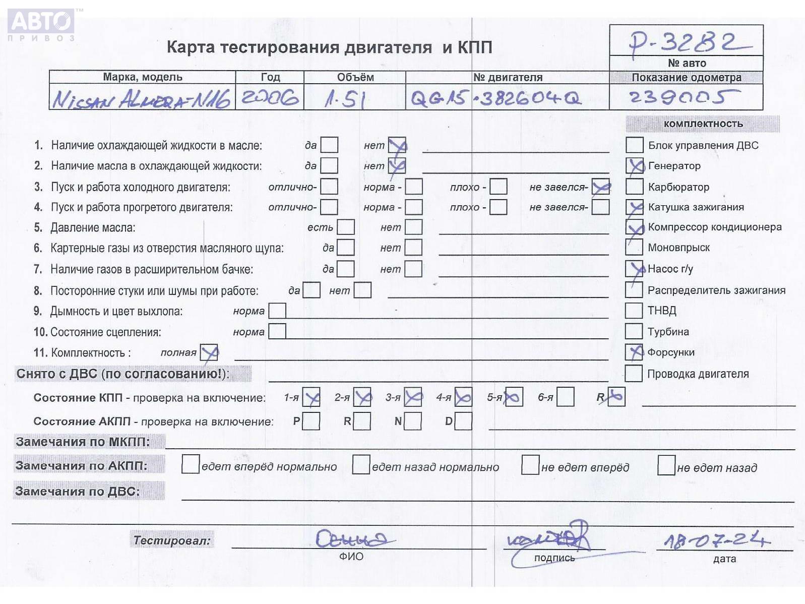 | Автомобиль / VIN: | P3282 SJNBAAN16U2694026 |