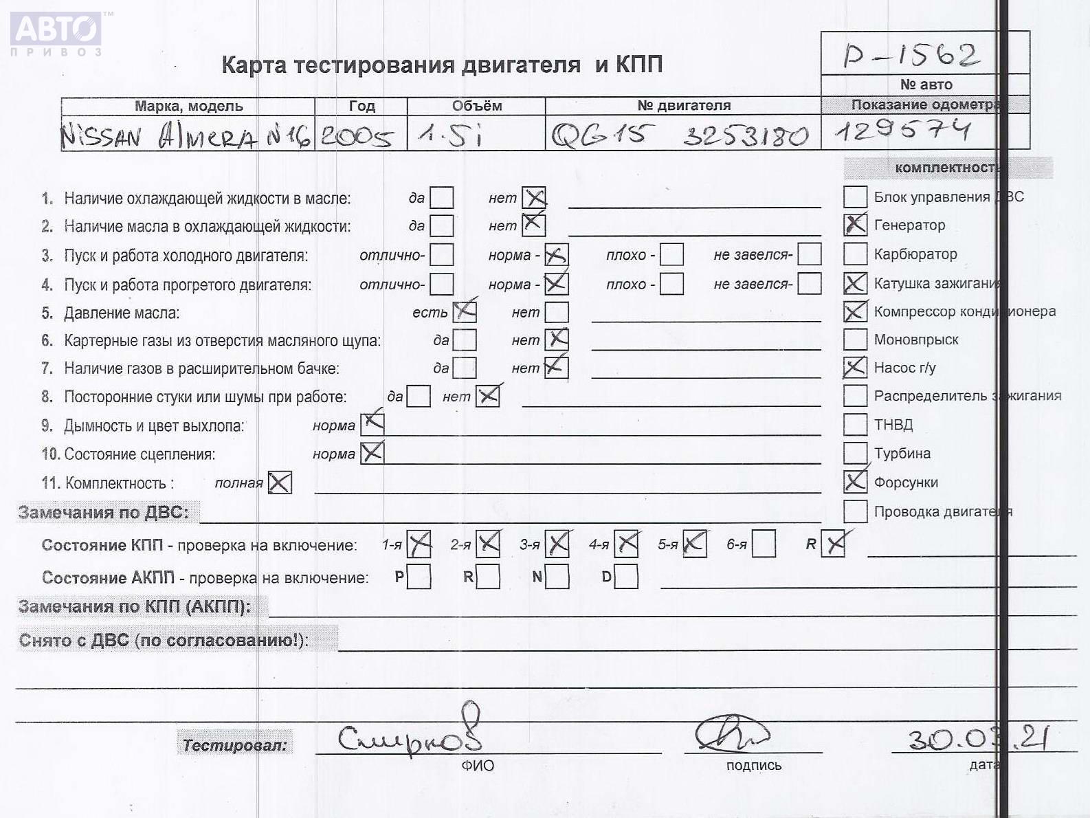 | Автомобиль / VIN: | P1562 SJNEAAN16U2621164 |