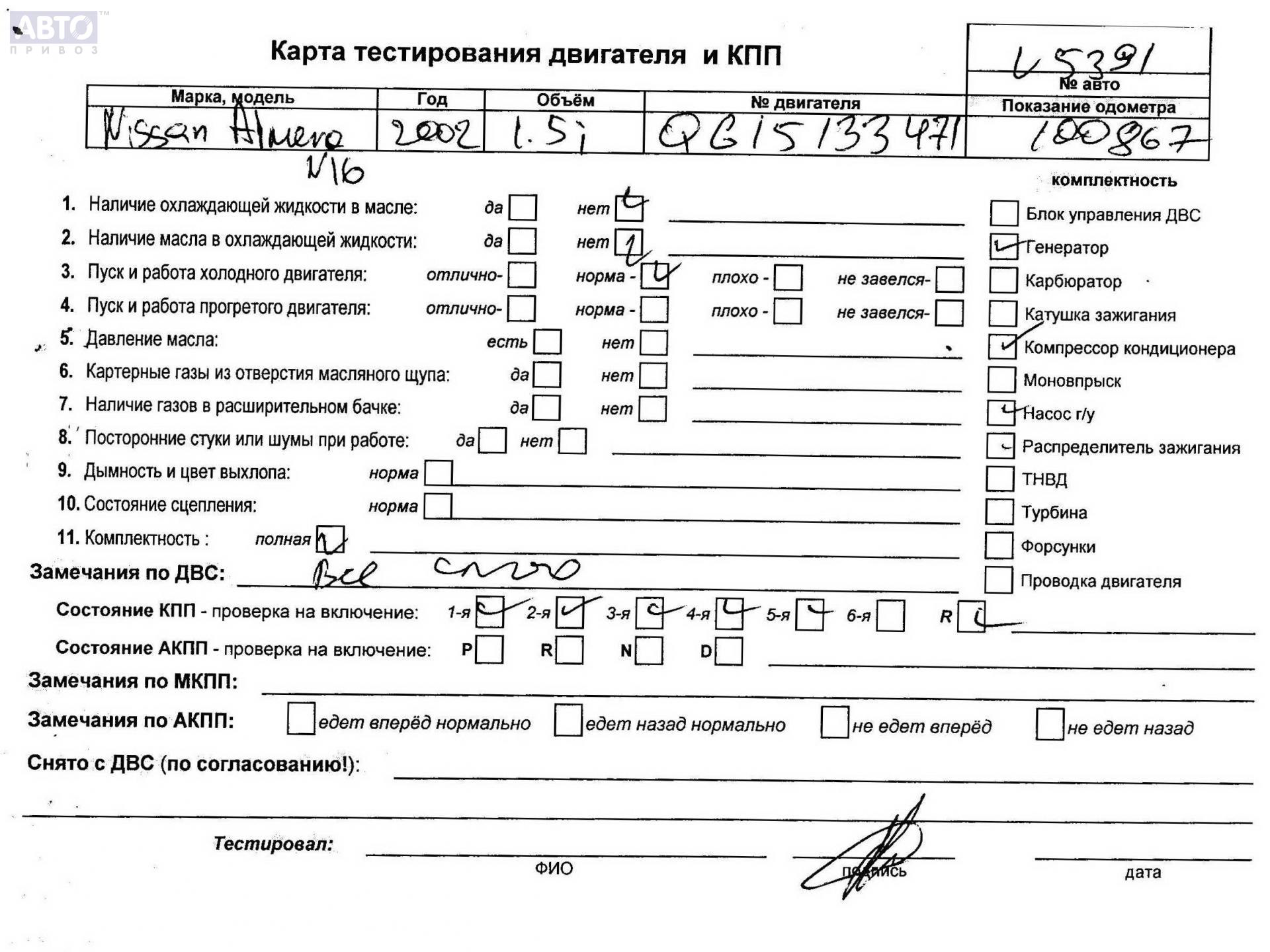 | Марка / Модель / Год: | Nissan Almera N16 (2000-2007) 2002 |