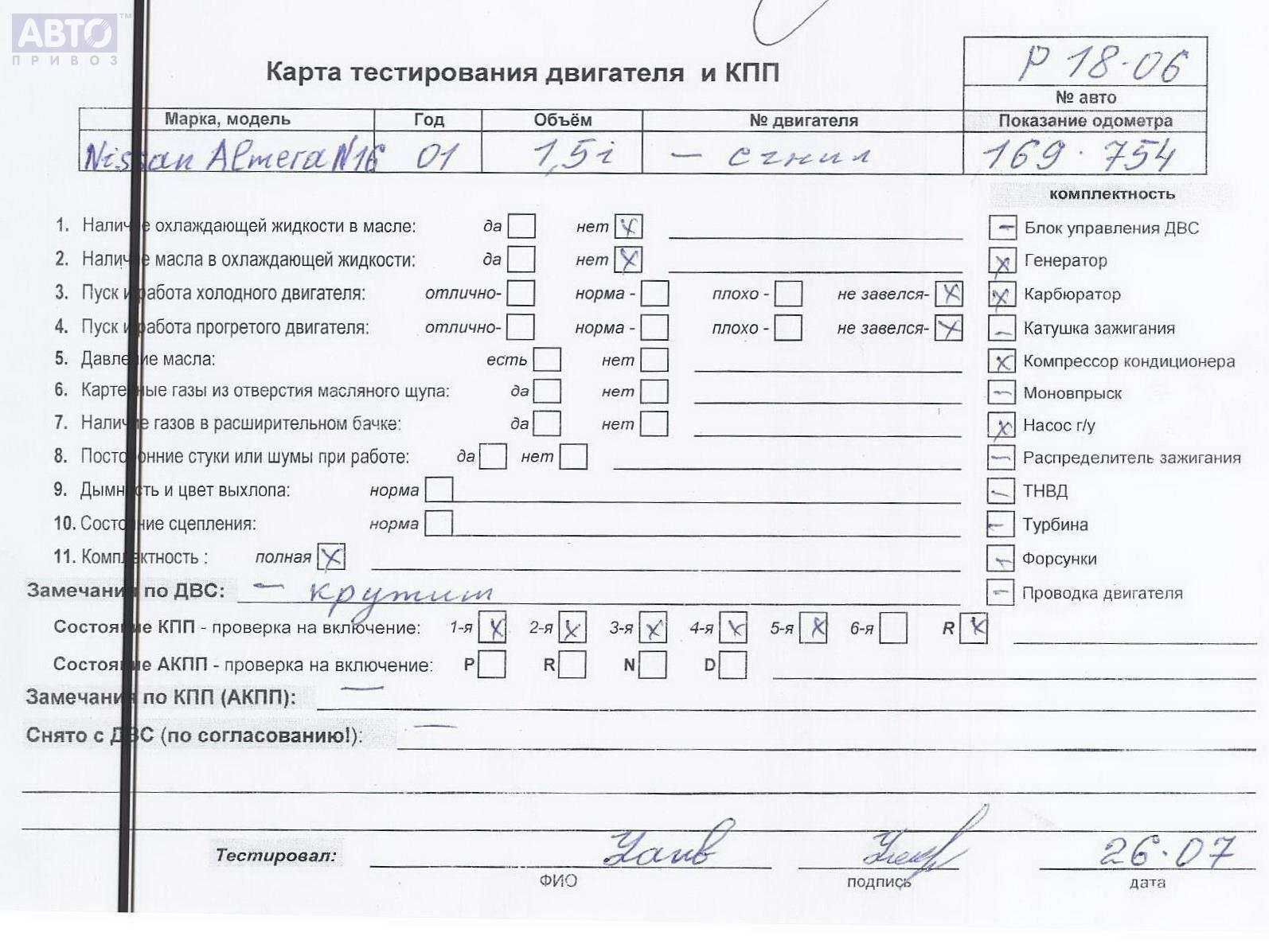 | Марка / Модель / Год: | Nissan Almera N16 (2000-2007) 2001 |
