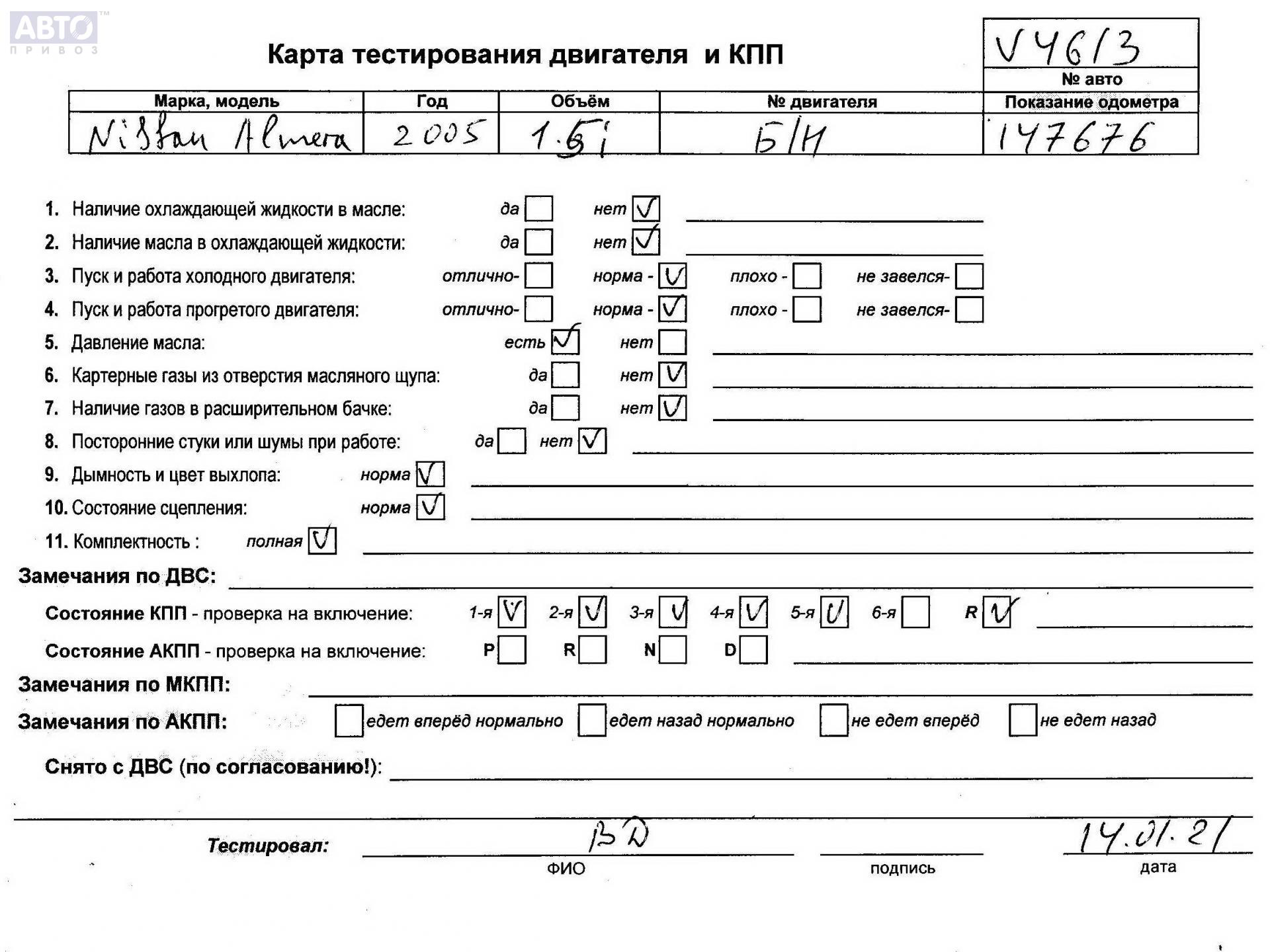| Марка / Модель / Год: | Nissan Almera N16 (2000-2007) 2005 |