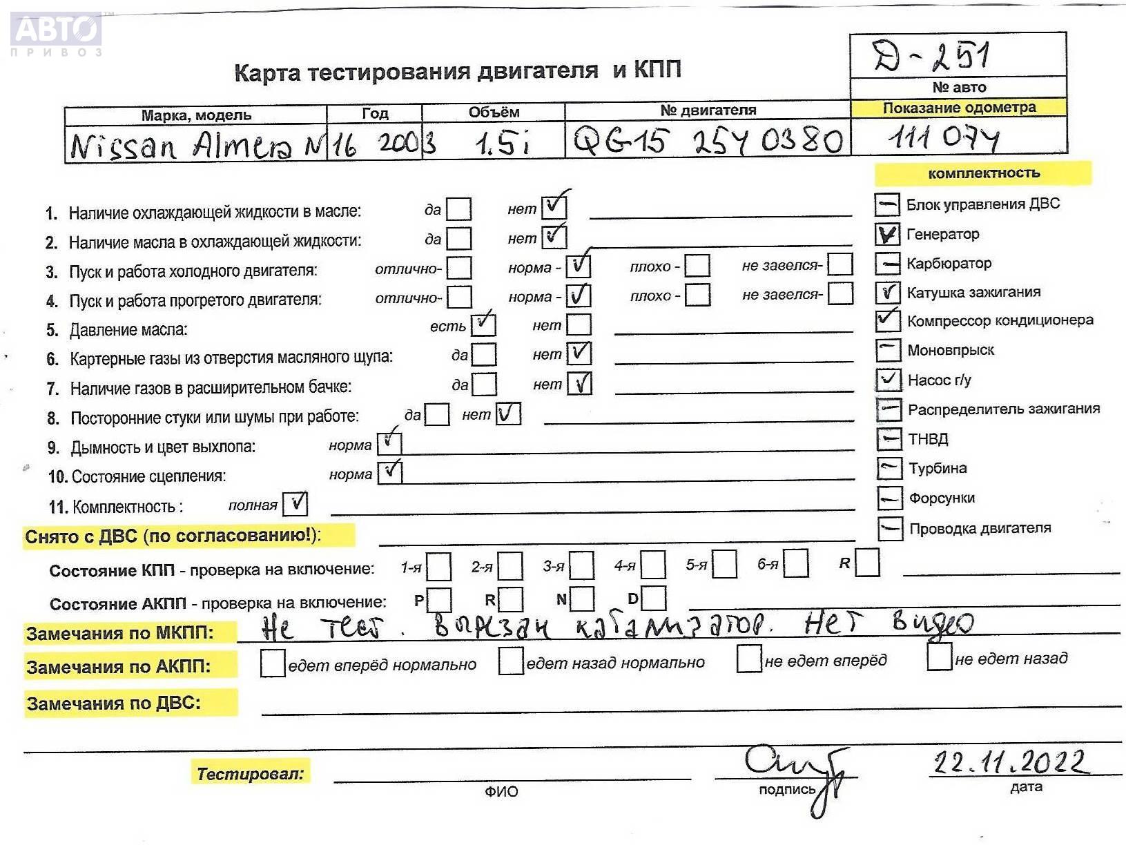 | Марка / Модель / Год: | Nissan Almera N16 (2000-2007) 2004 |
