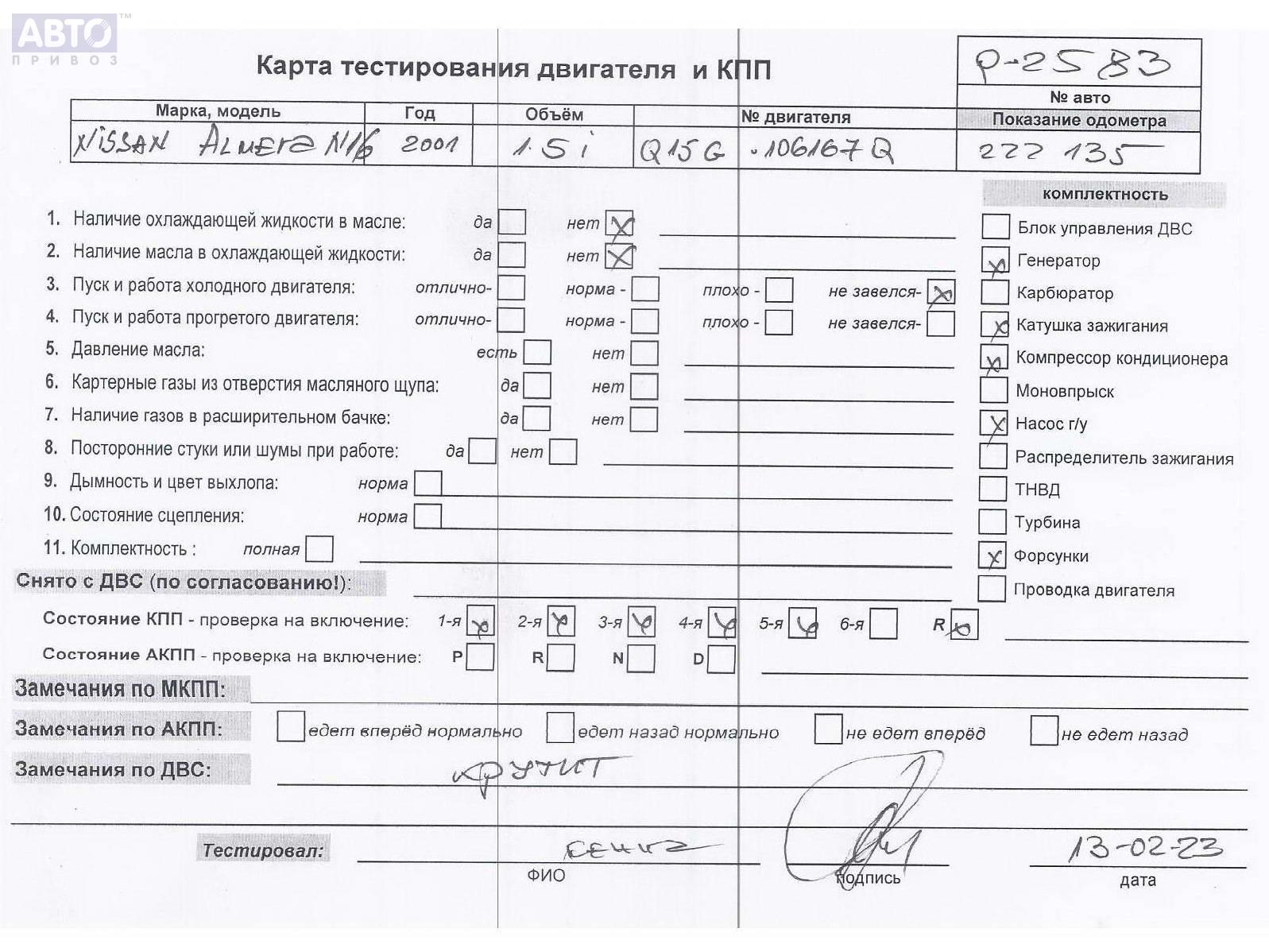 | Марка / Модель / Год: | Nissan Almera N16 (2000-2007) 2001 |