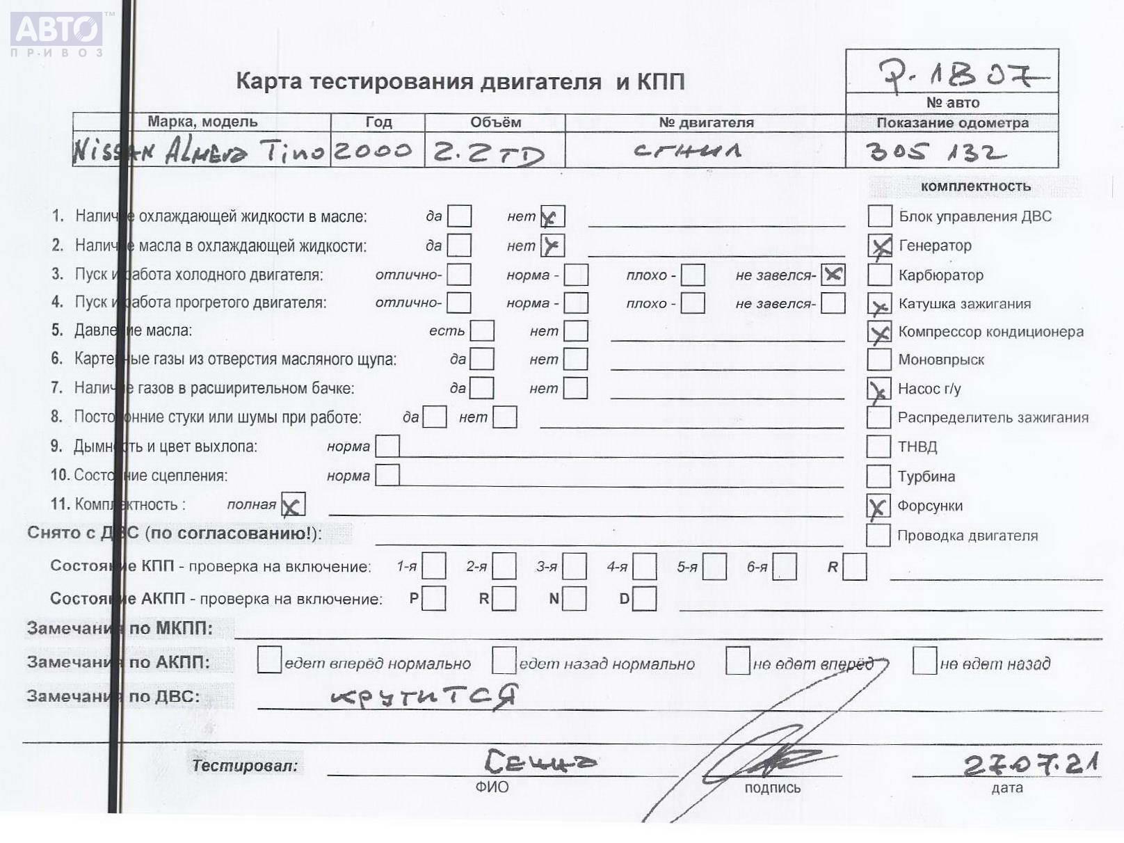 | Автомобиль / VIN: | P1807 VSKTDAV10U0032600 |