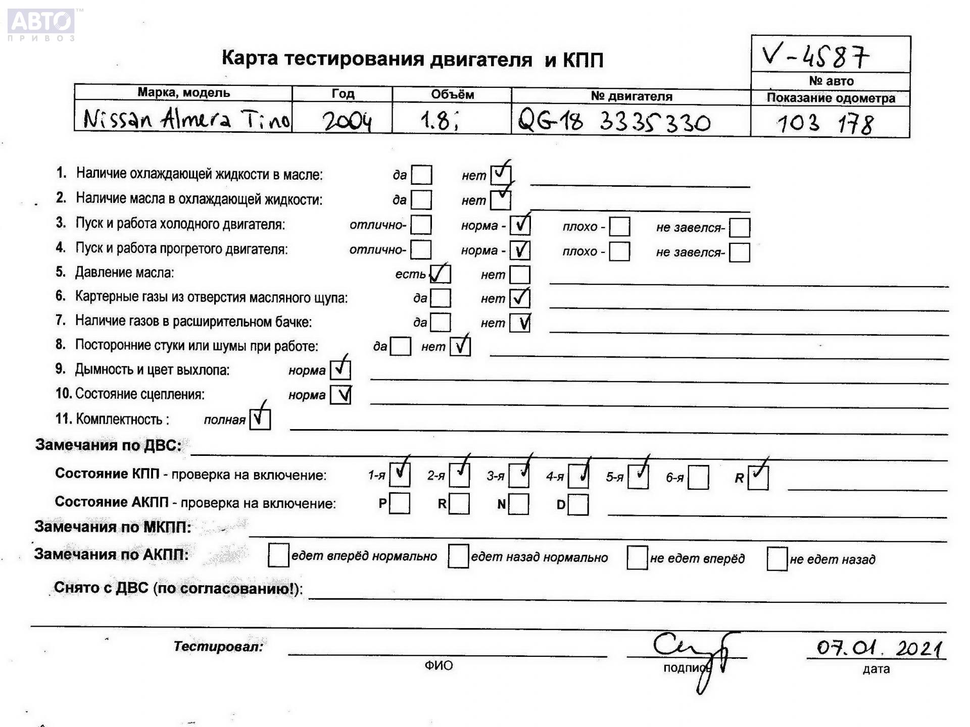 | Марка / Модель / Год: | Nissan Almera Tino 2004 |