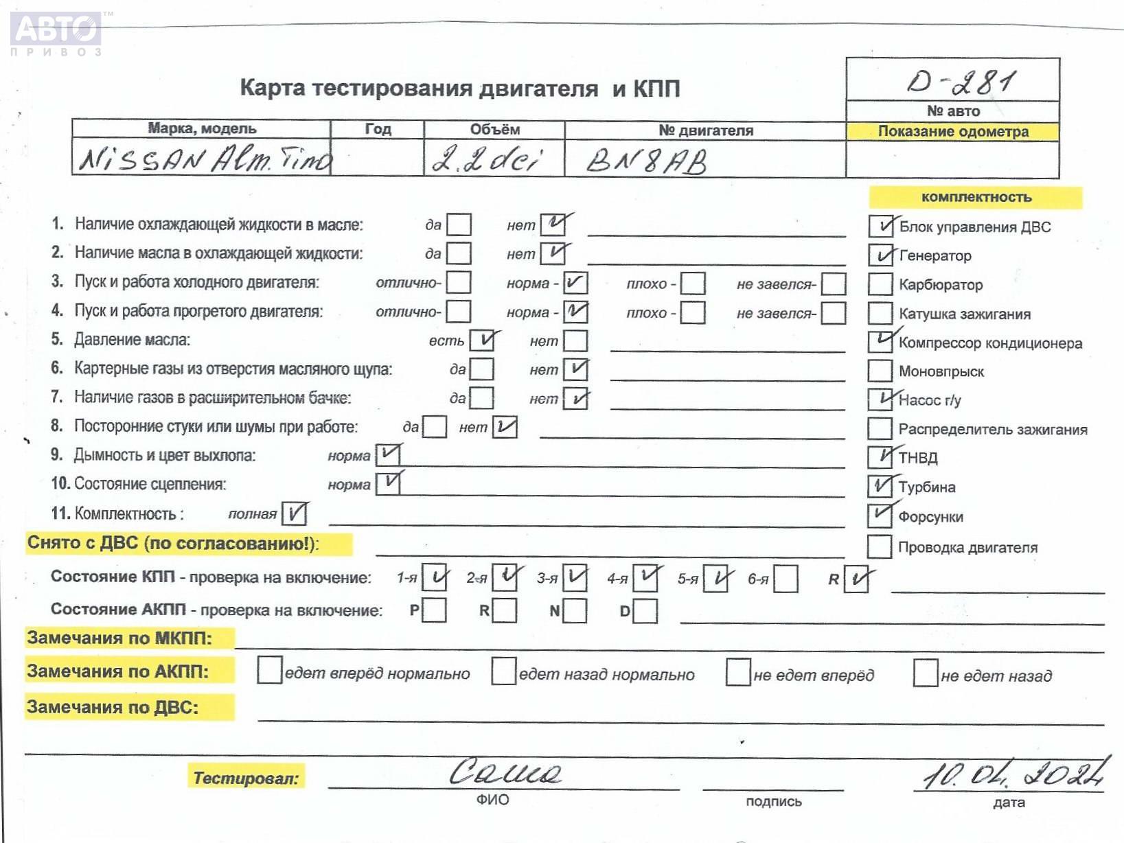 | Автомобиль / VIN: | D0281 VSKTDAV10U0154992 |