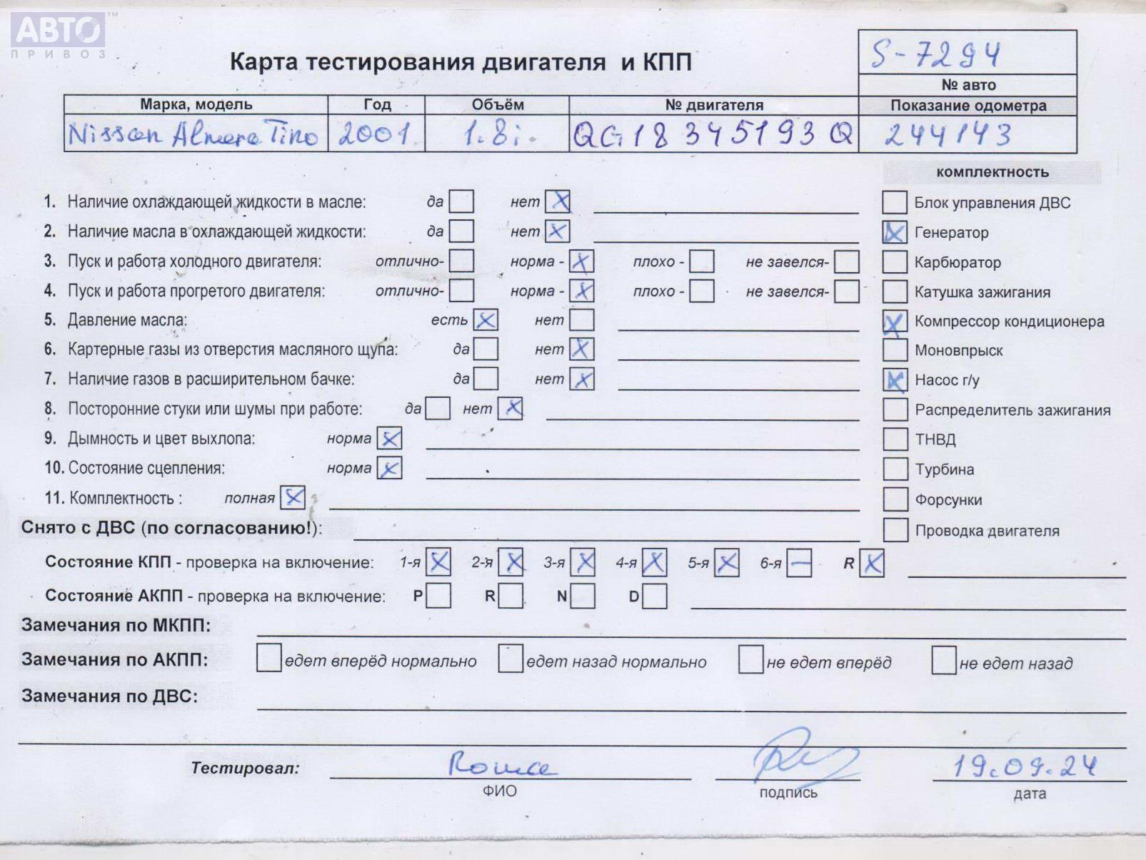 | Марка / Модель / Год: | Nissan Almera Tino 2001 |
