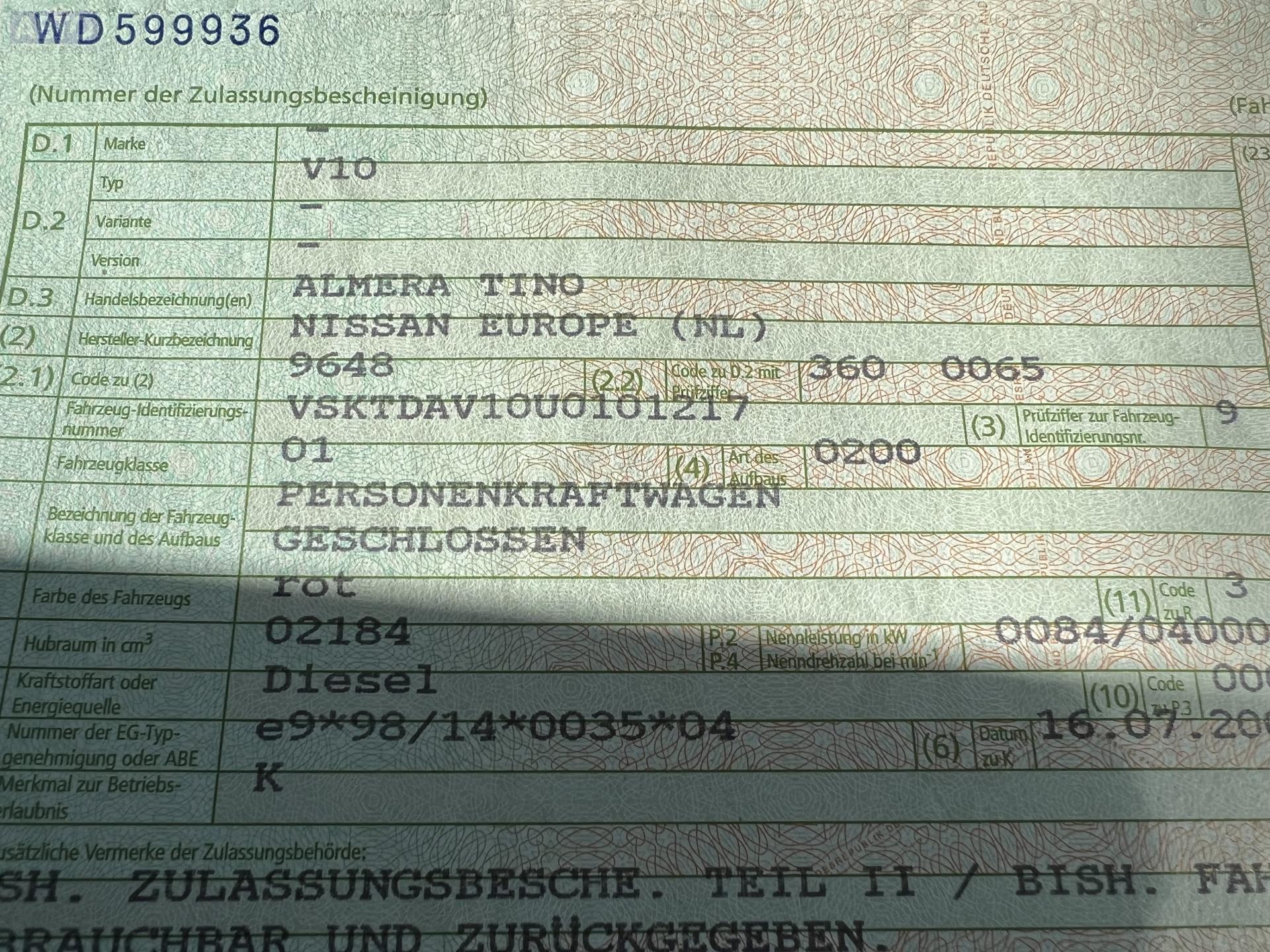 | Марка / Модель / Год: | Nissan Almera Tino 2002 |