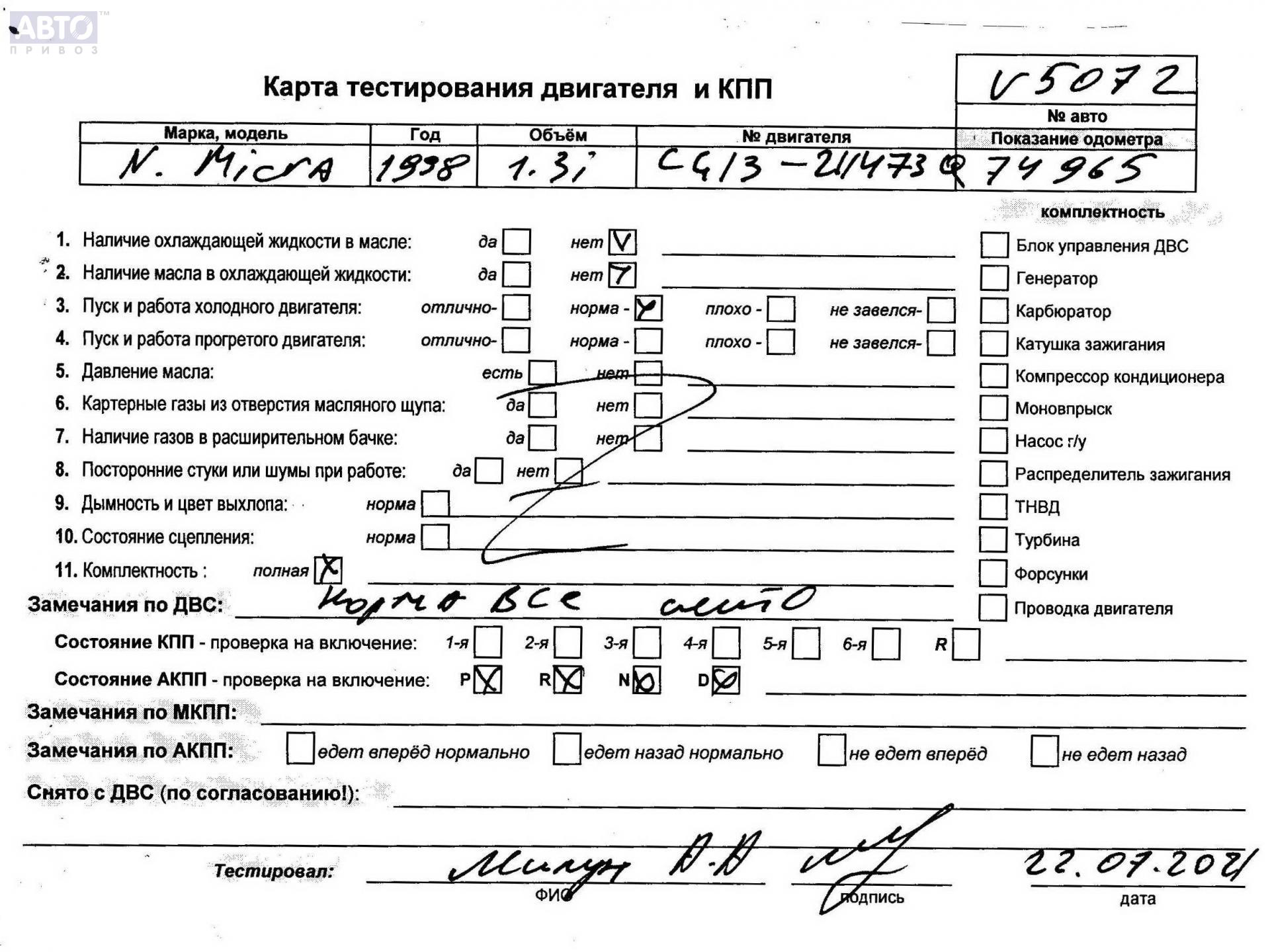 | Марка / Модель / Год: | Nissan Micra K11 (1992-2003) 1998 |
