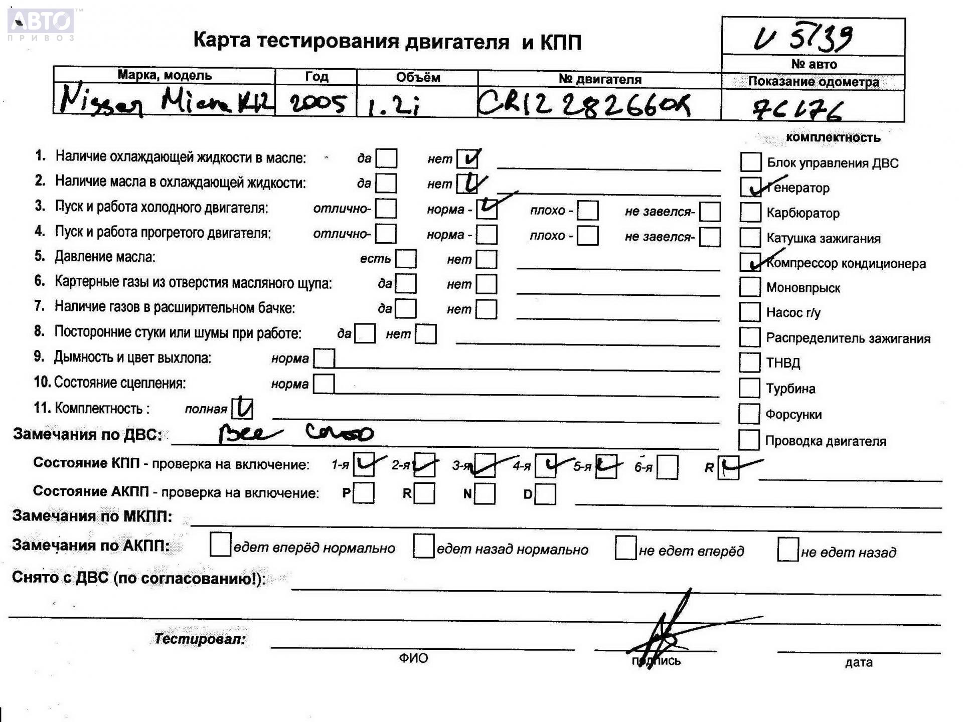 | Марка / Модель / Год: | Nissan Micra K12 (2003-2010) 2005 |