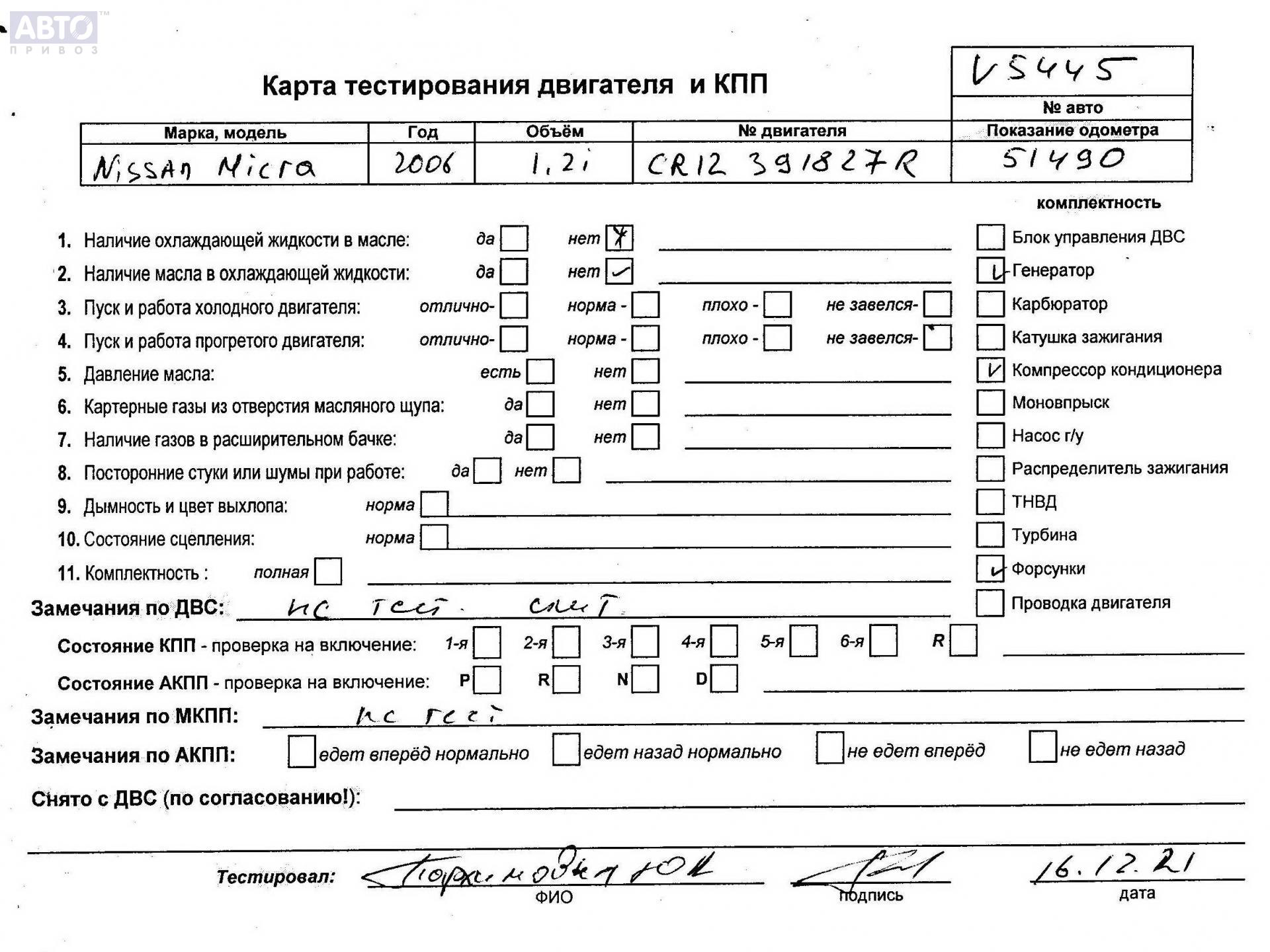 | Марка / Модель / Год: | Nissan Micra K12 (2003-2010) 2006 |