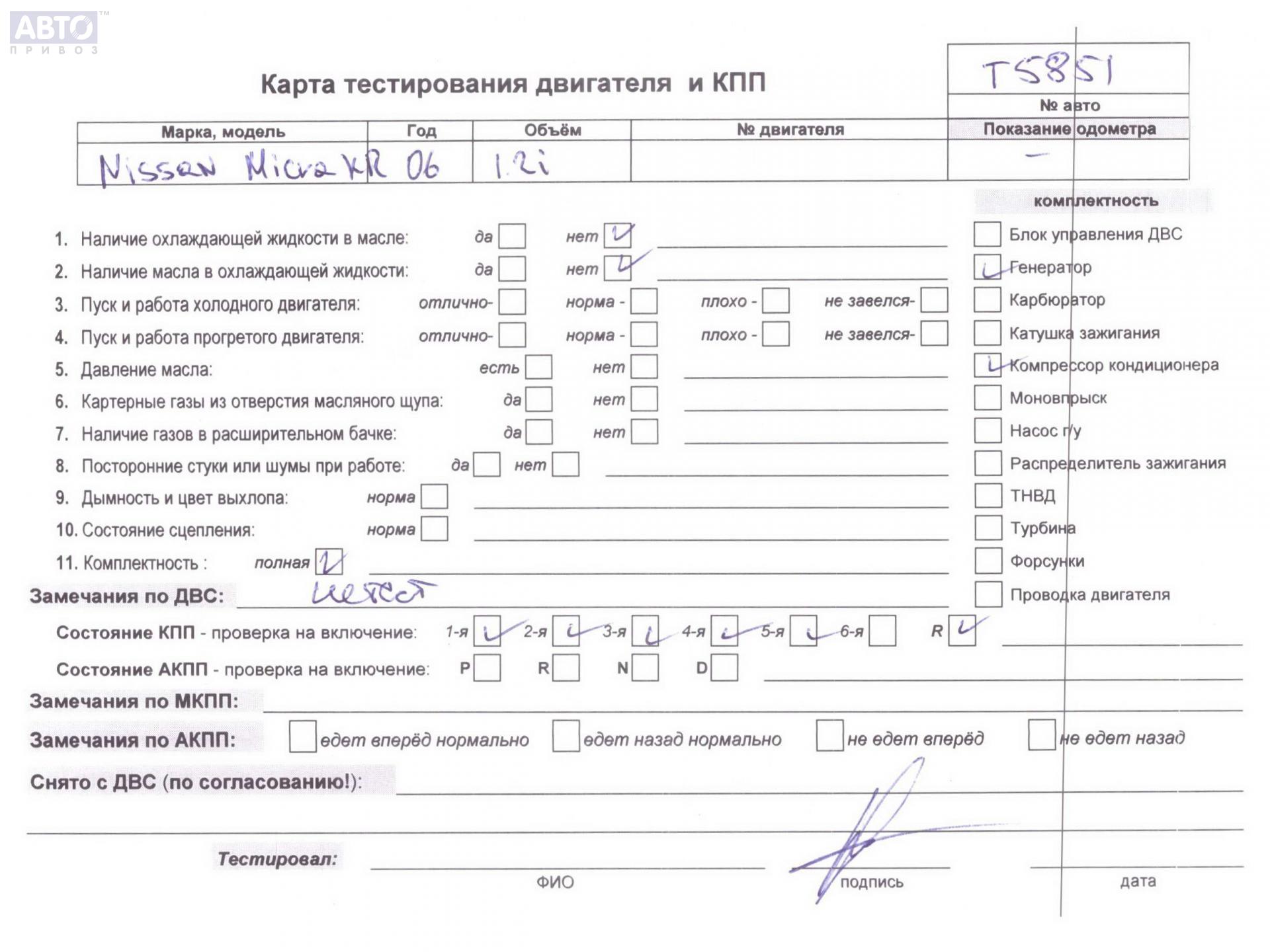 | Марка / Модель / Год: | Nissan Micra K12 (2003-2010) 2006 |