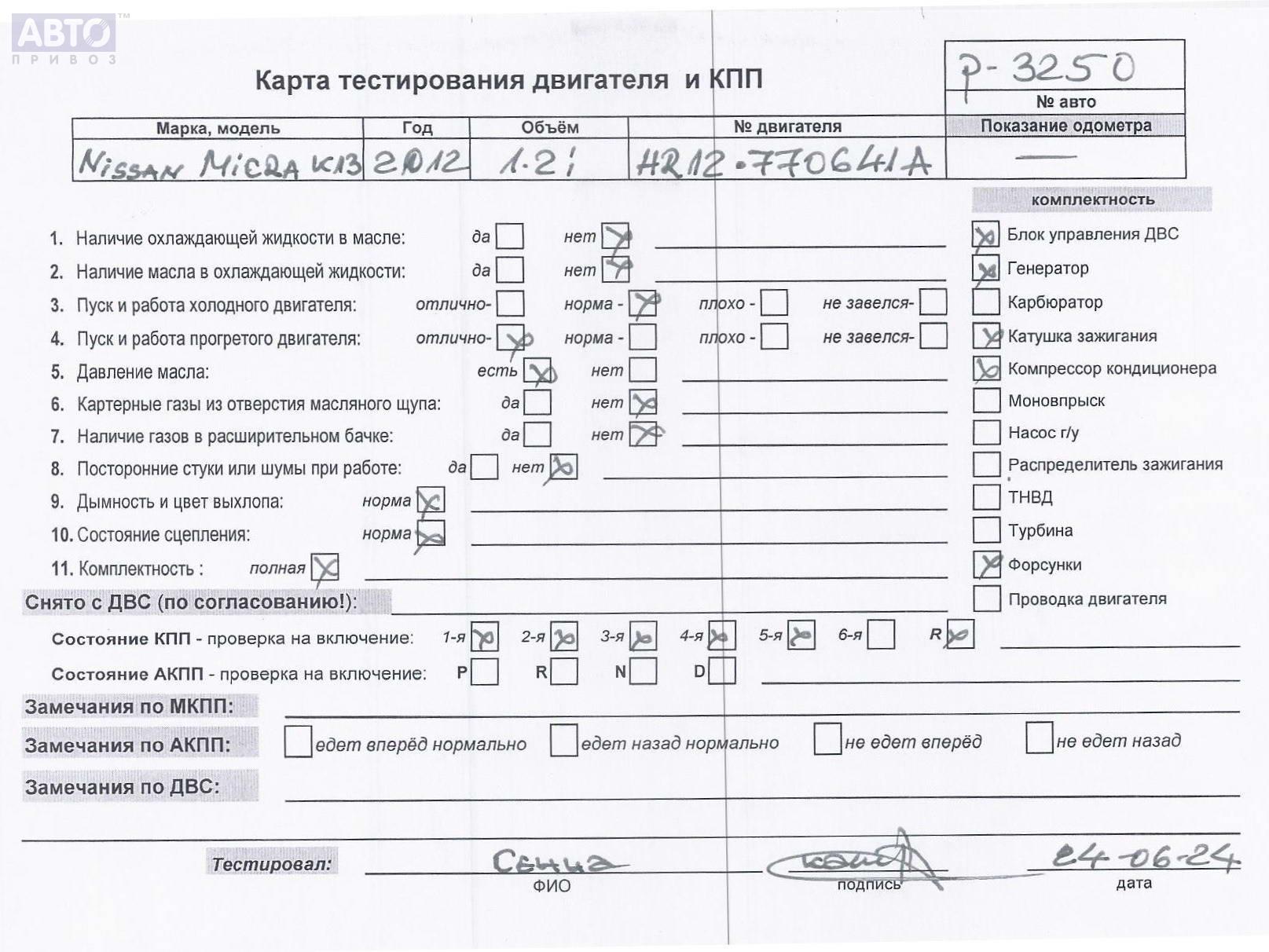 | Марка / Модель / Год: | Nissan Micra K13 (2010-2016) 2012 |