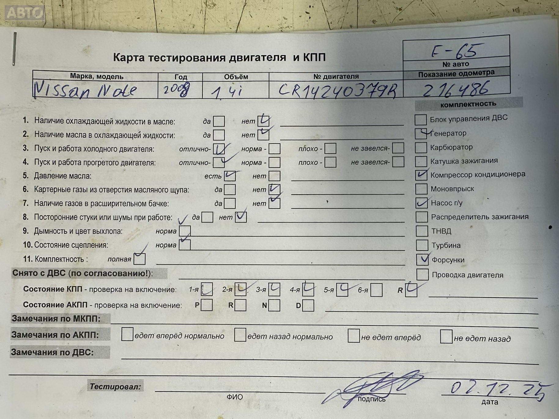 | Марка / Модель / Год: | Nissan Note 2009 |