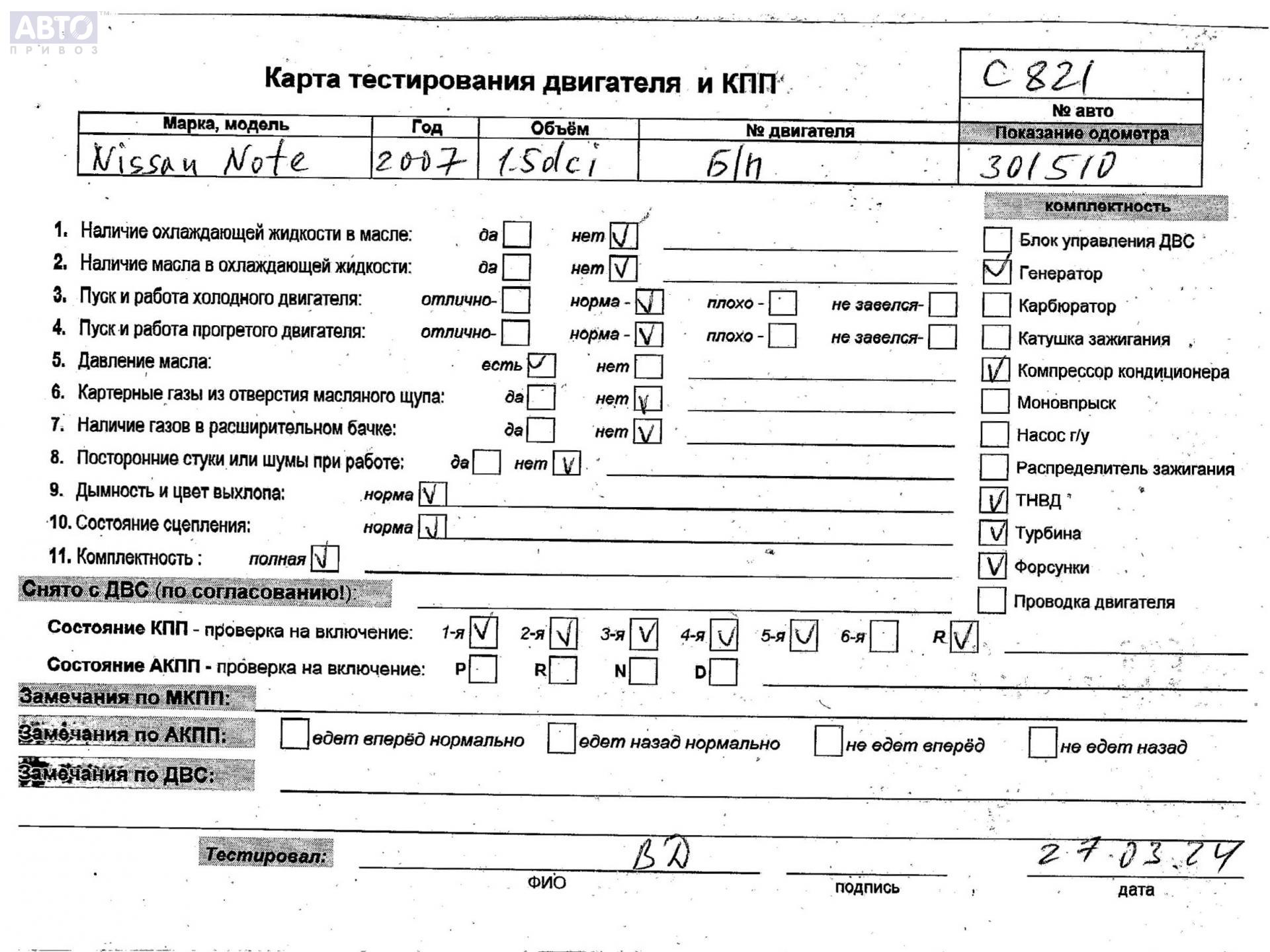 | Марка / Модель / Год: | Nissan Note 2007 |