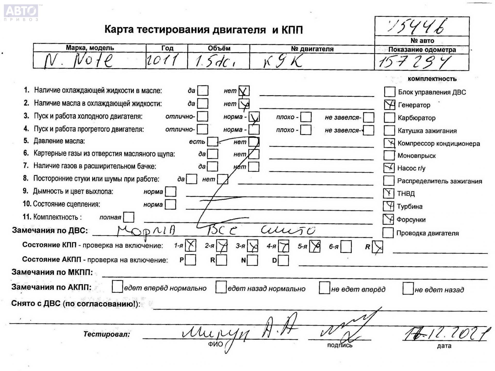 | Марка / Модель / Год: | Nissan Note 2010 |