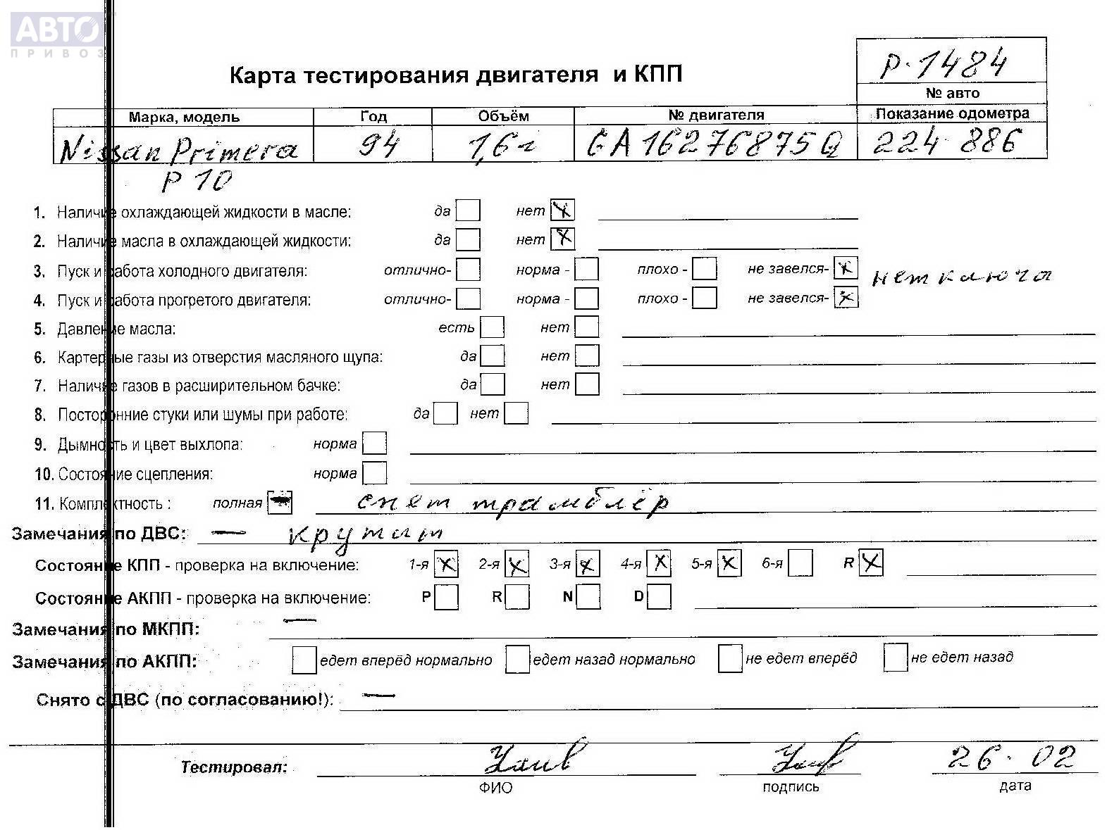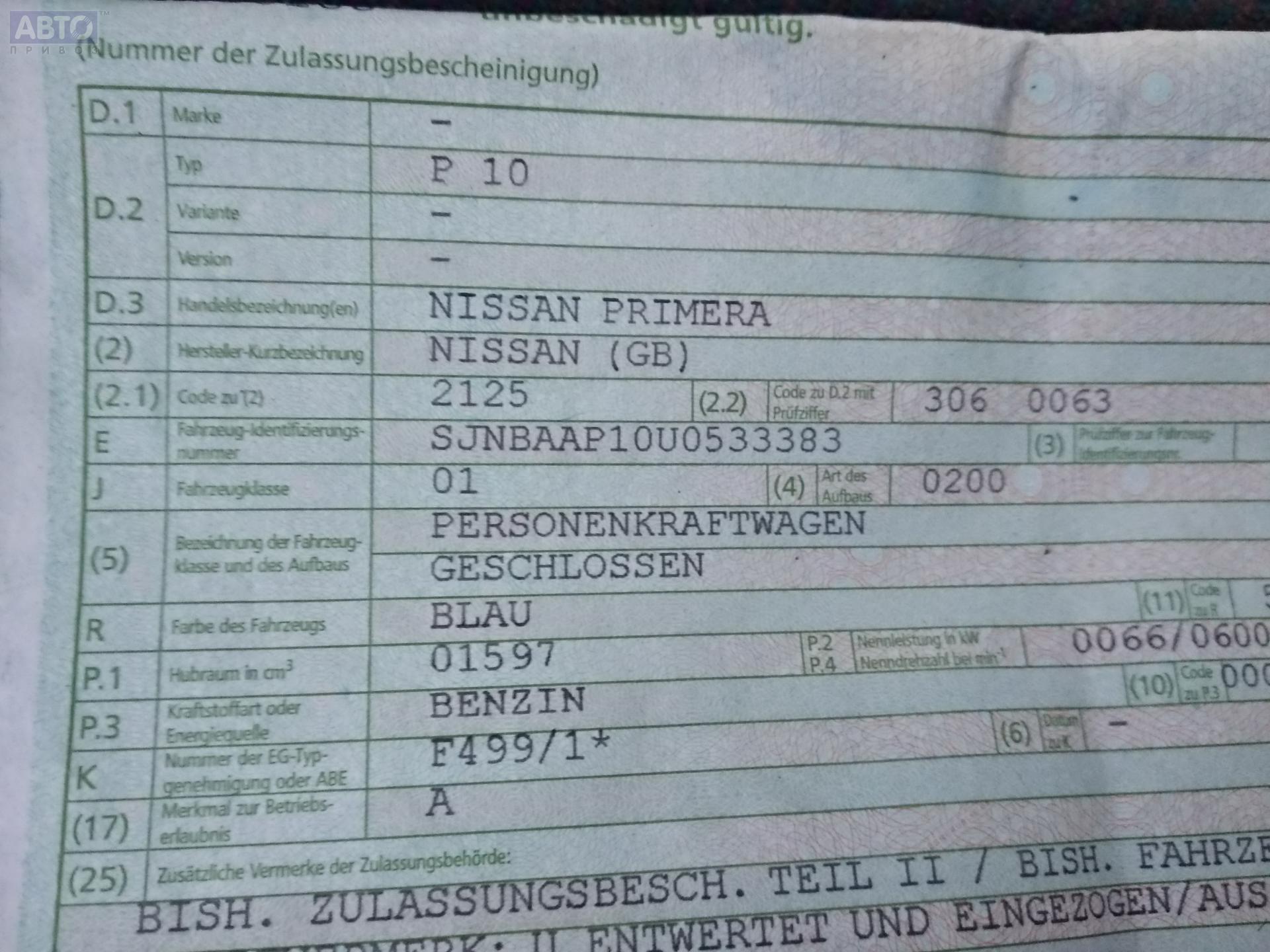 | Марка / Модель / Год: | Nissan Primera P10 (1990-1996) 1995 |