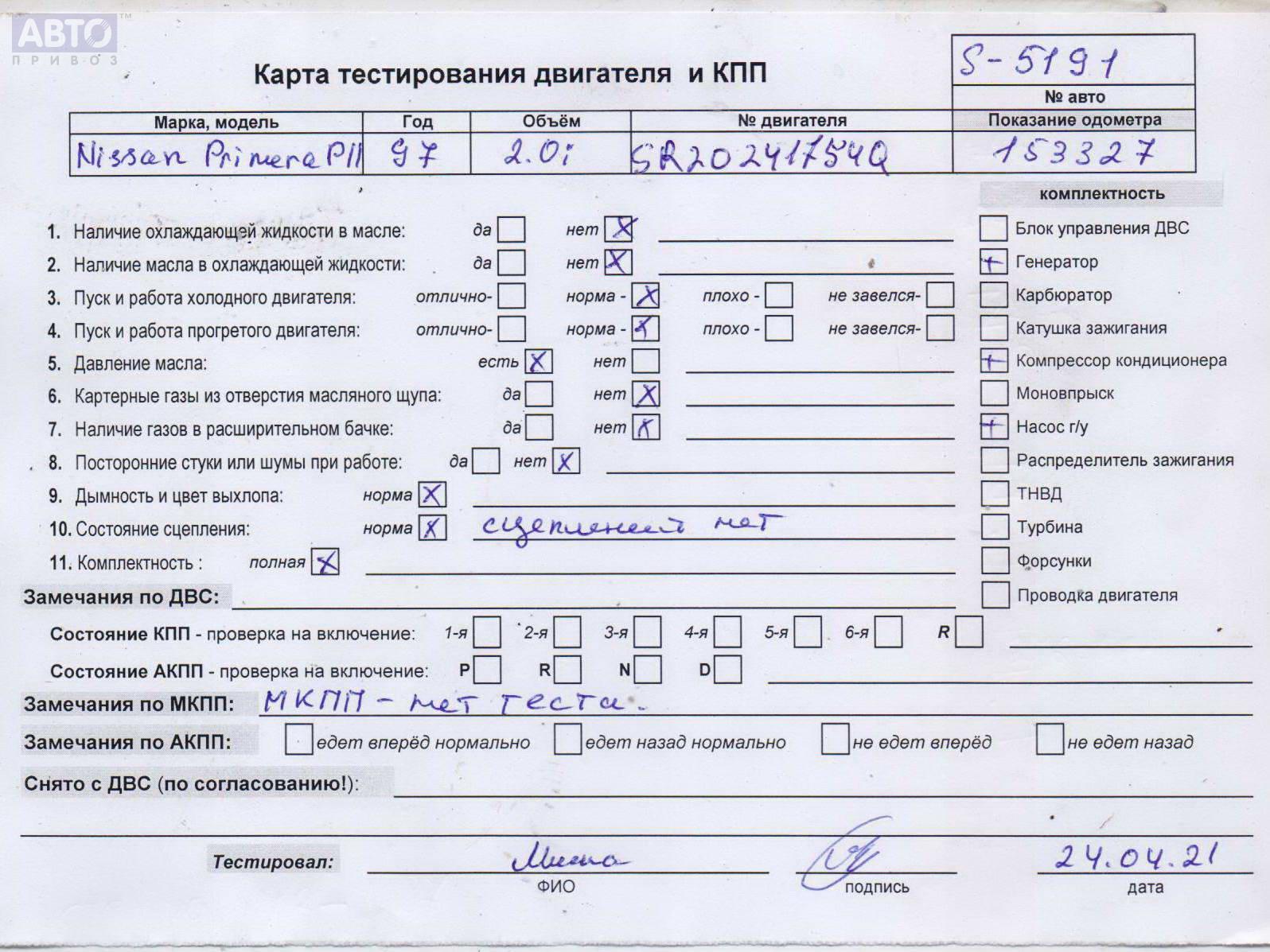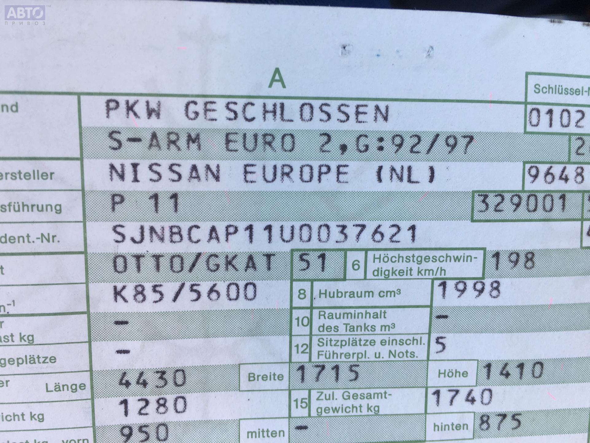 | Марка / Модель / Год: | Nissan Primera P11 (1996-1999) 1997 |