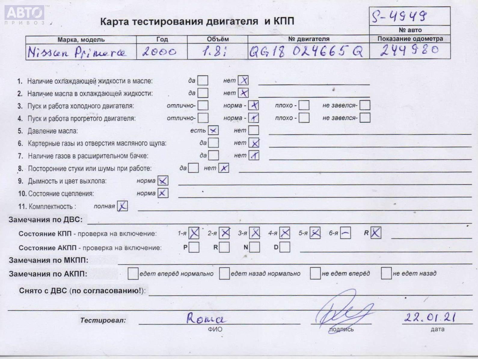 | Марка / Модель / Год: | Nissan Primera P11 (1999-2002) 2000 |