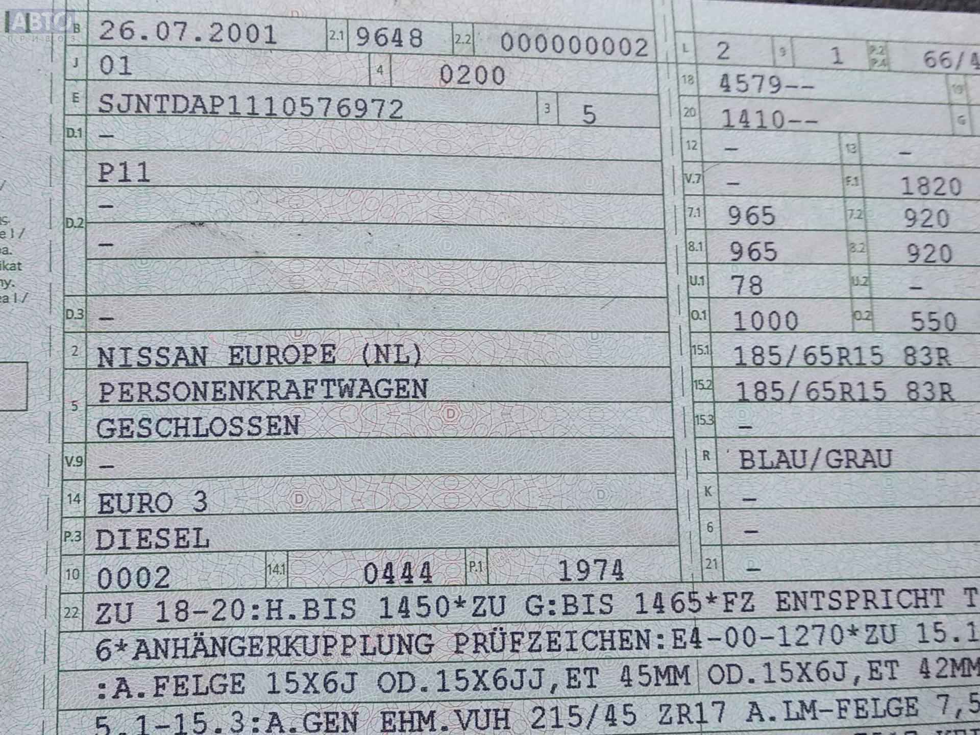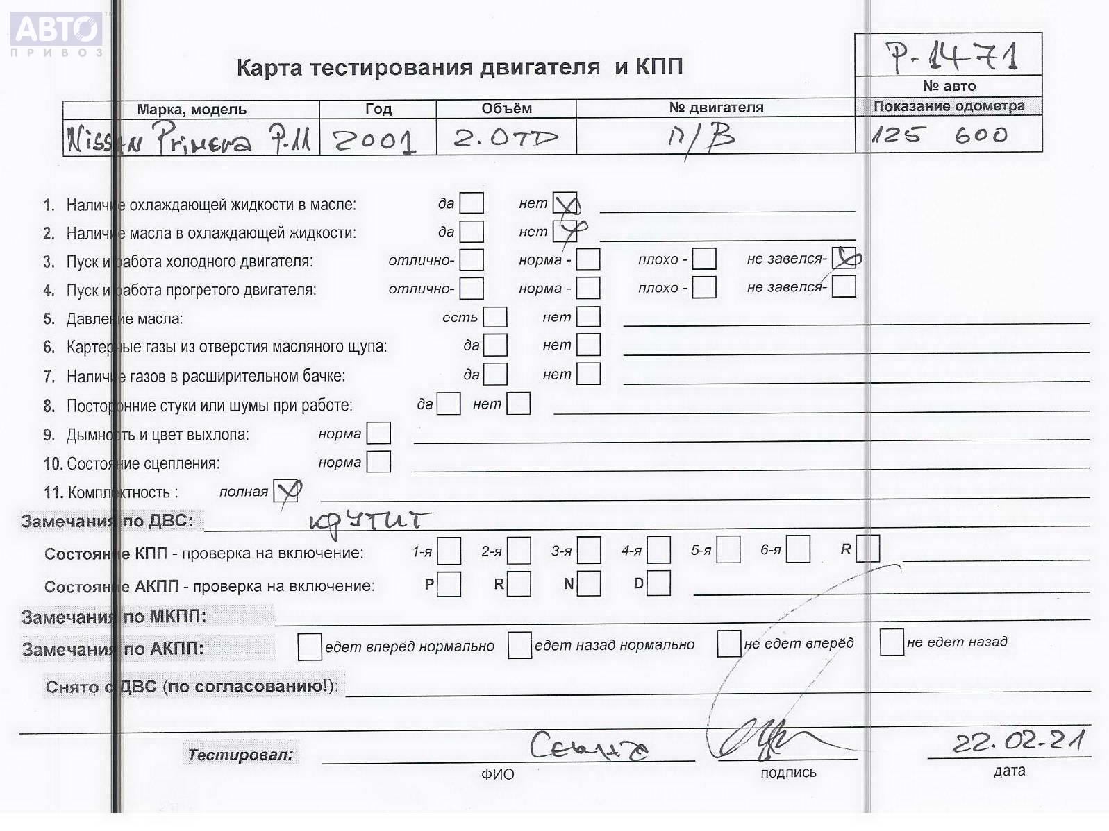 | Марка / Модель / Год: | Nissan Primera P11 (1999-2002) 2001 |
