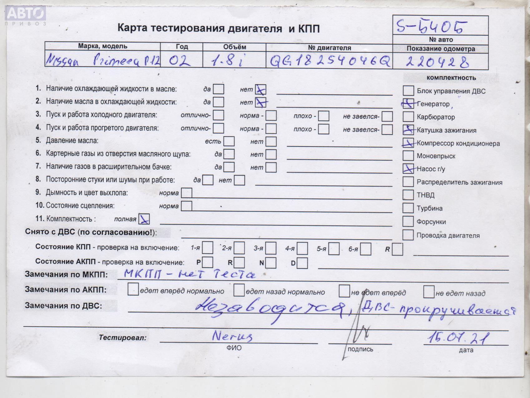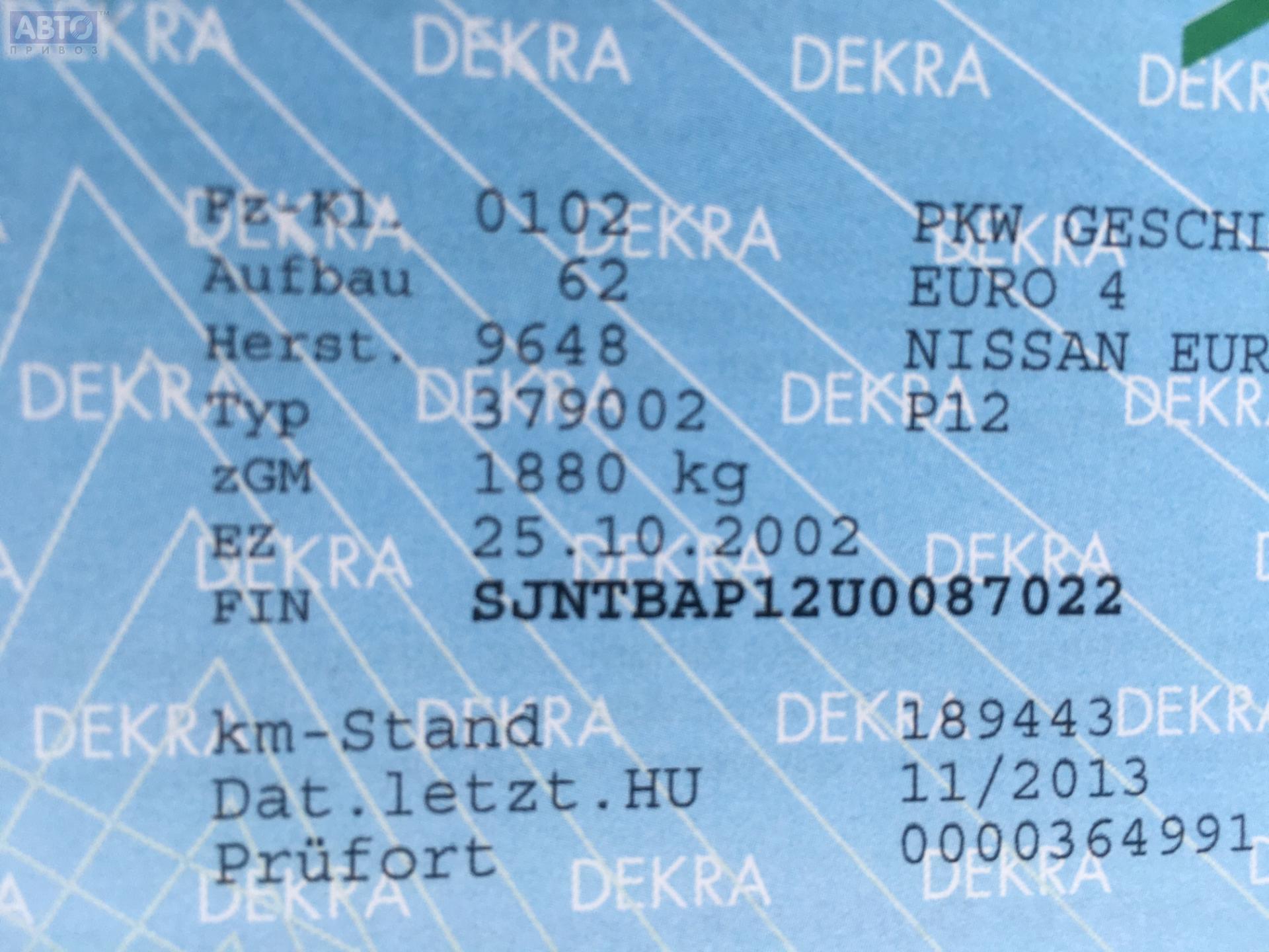 | Марка / Модель / Год: | Nissan Primera P12 (2002-2008) 2002 |