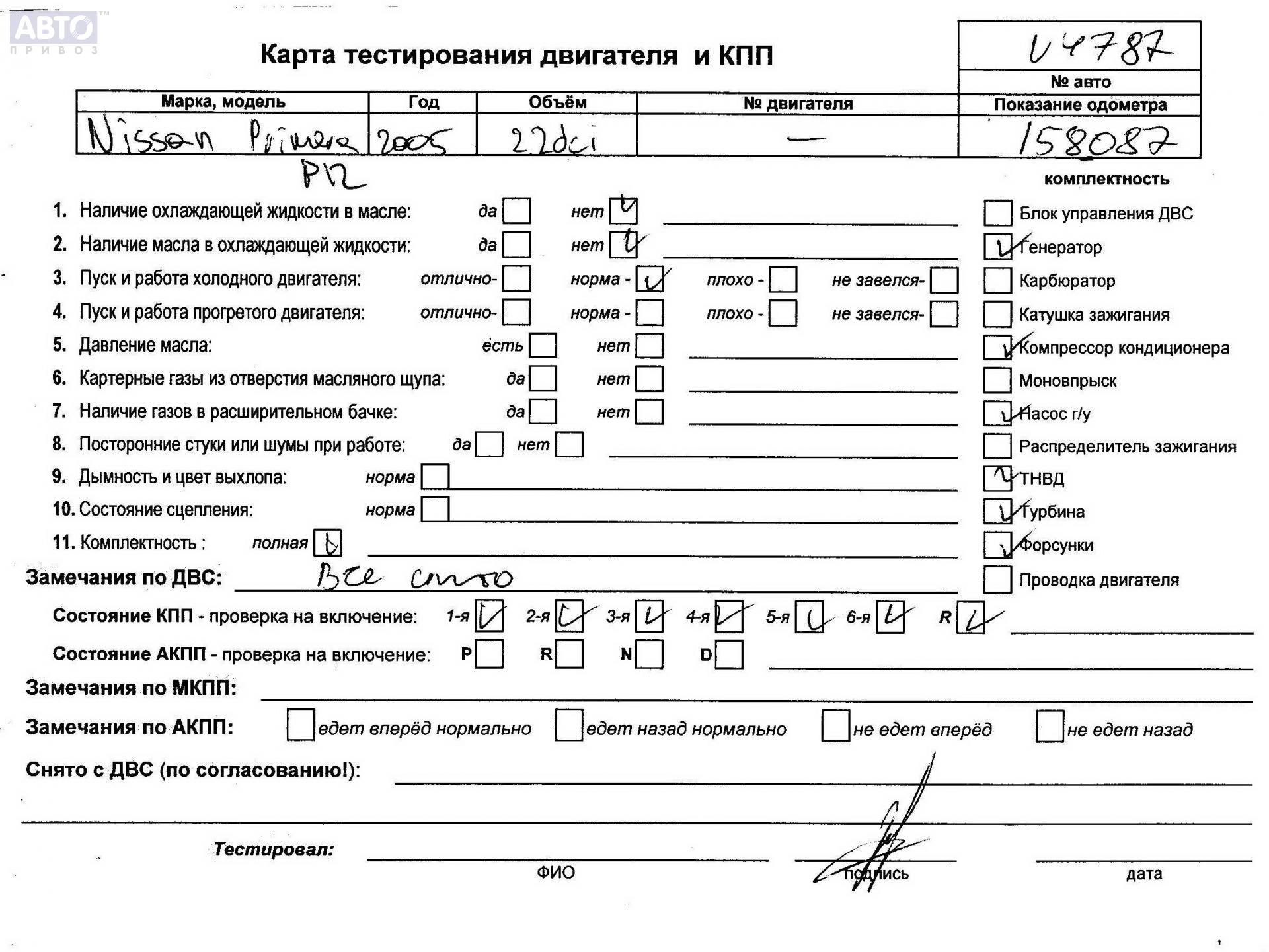 | Марка / Модель / Год: | Nissan Primera P12 (2002-2008) 2005 |