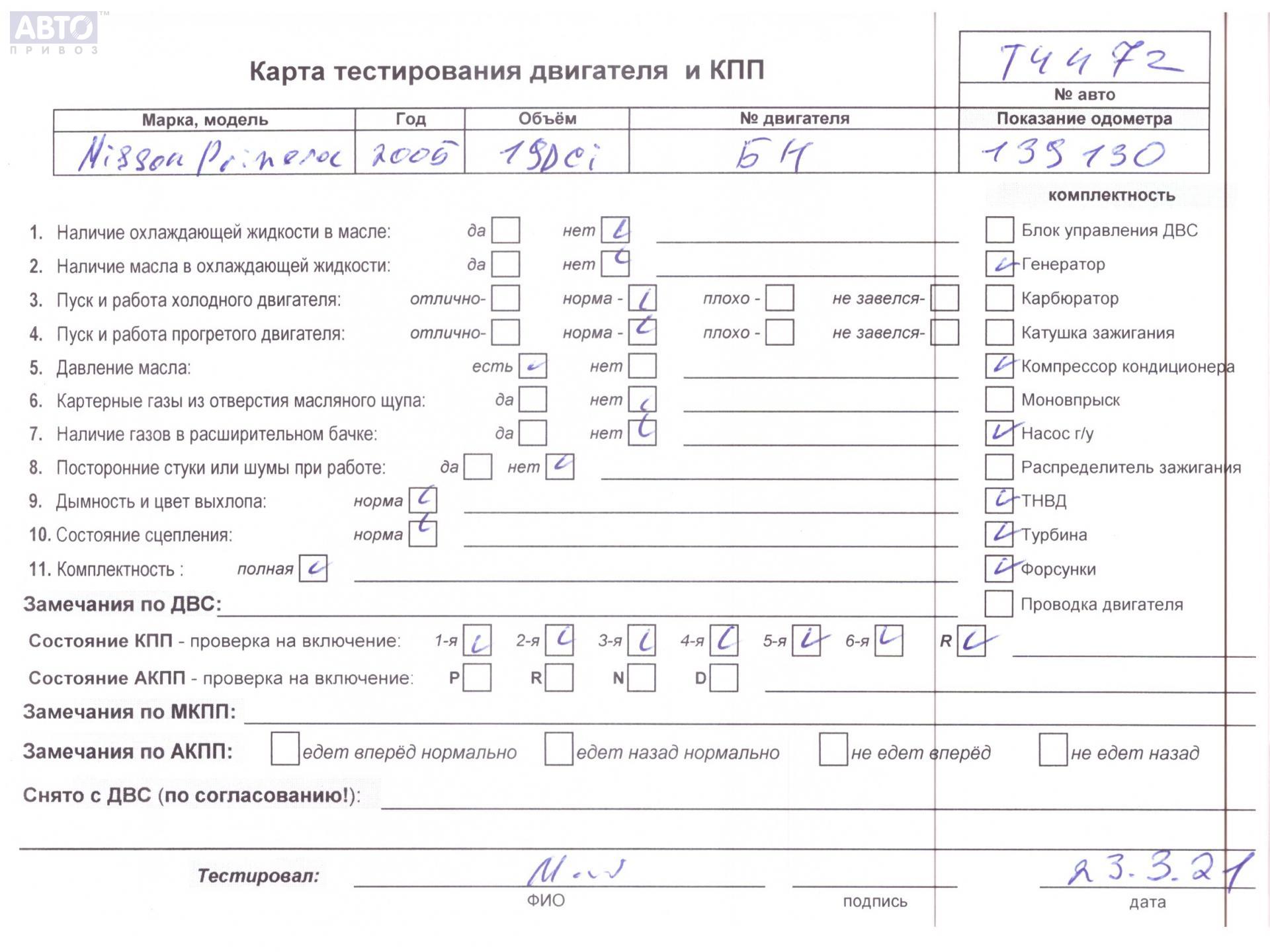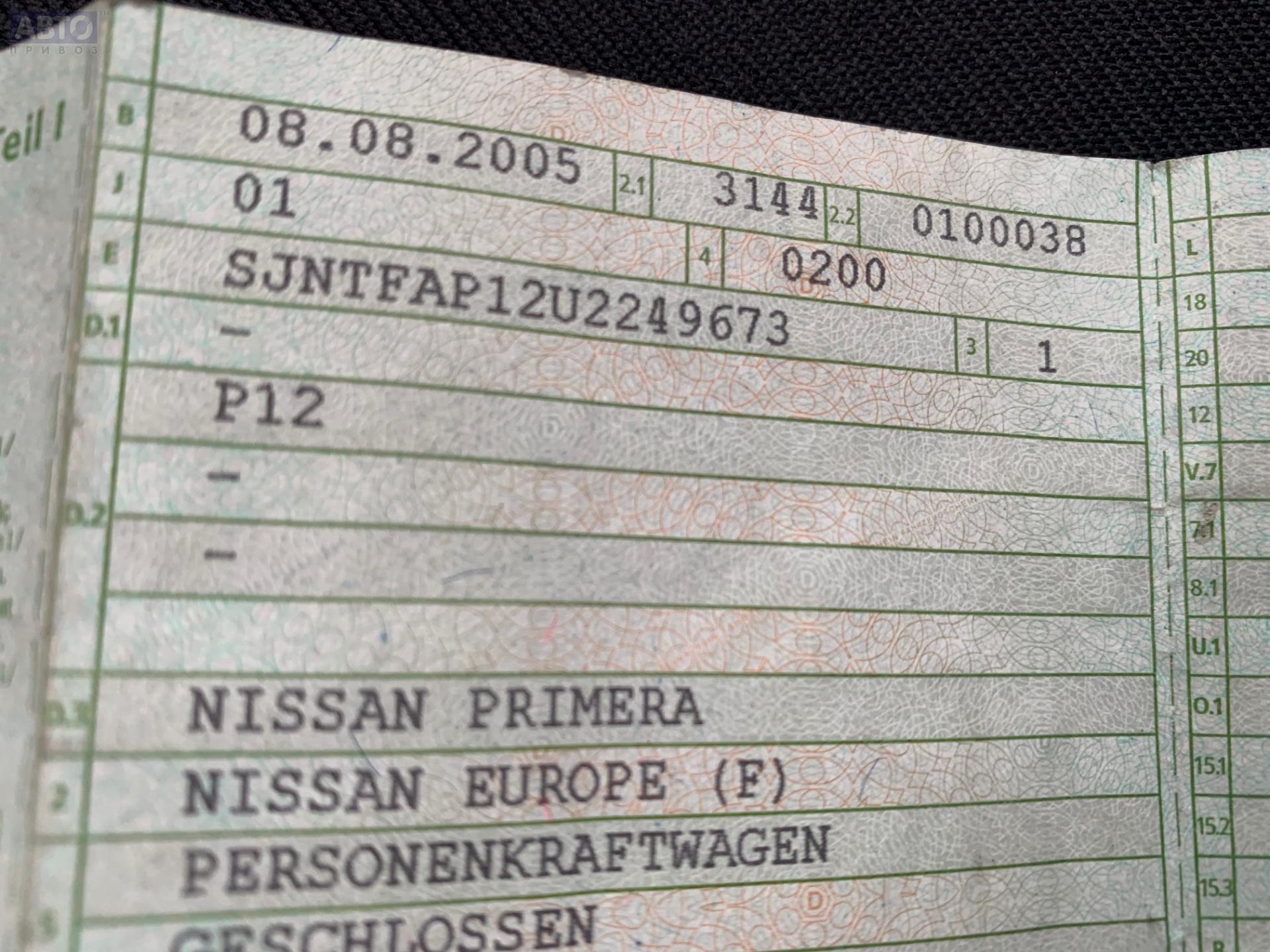 | Марка / Модель / Год: | Nissan Primera P12 (2002-2008) 2005 |