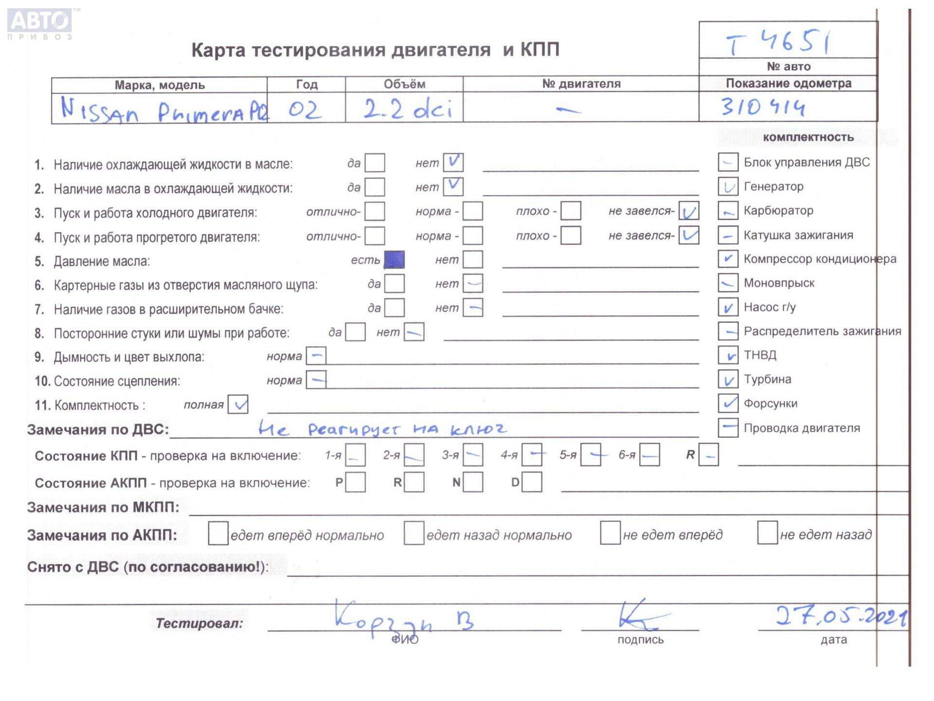 | Марка / Модель / Год: | Nissan Primera P12 (2002-2008) 2002 |