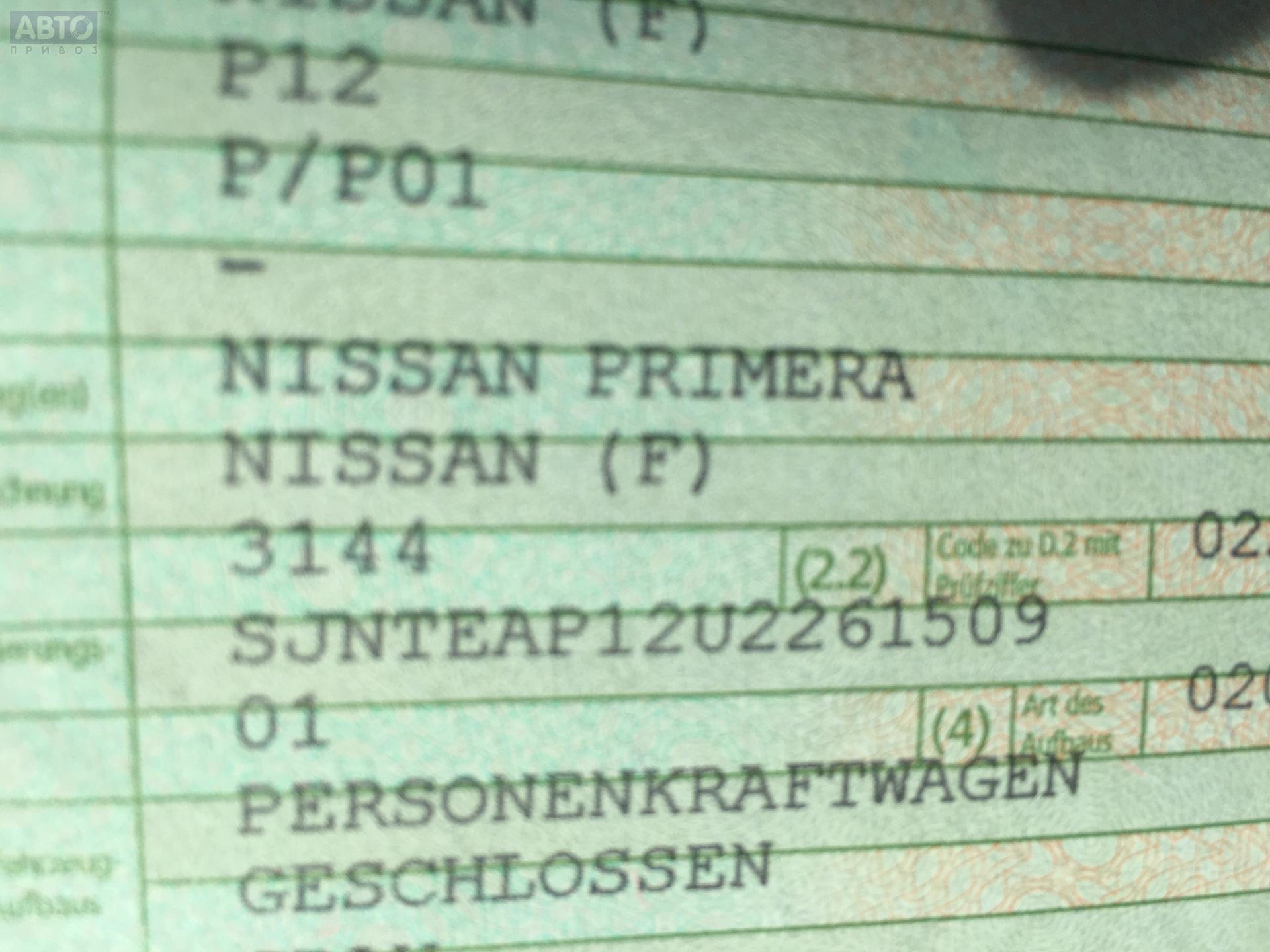 | Марка / Модель / Год: | Nissan Primera P12 (2002-2008) 2005 |
