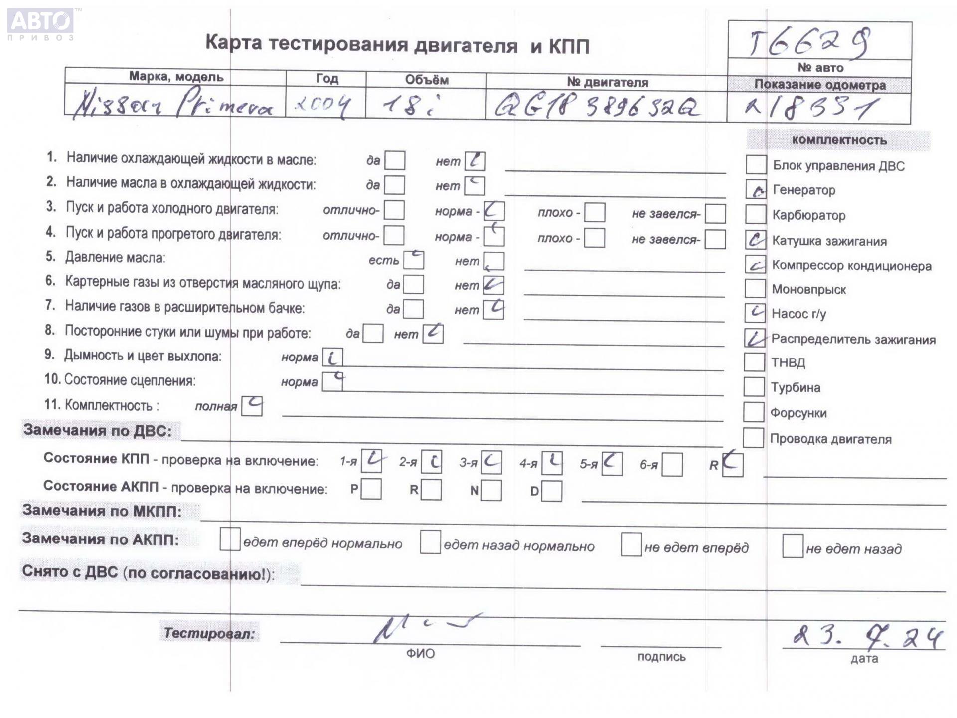 | Марка / Модель / Год: | Nissan Primera P12 (2002-2008) 2004 |