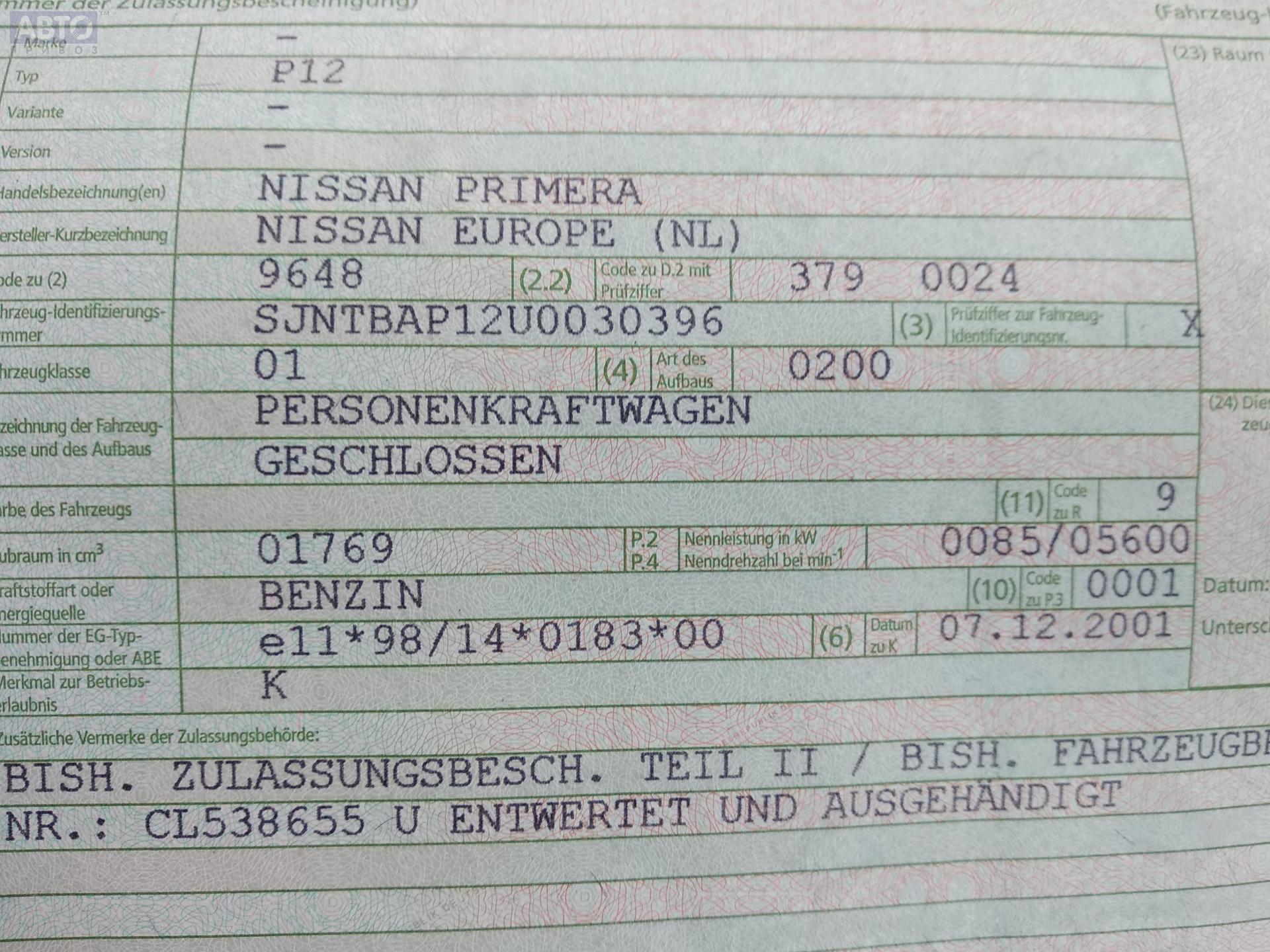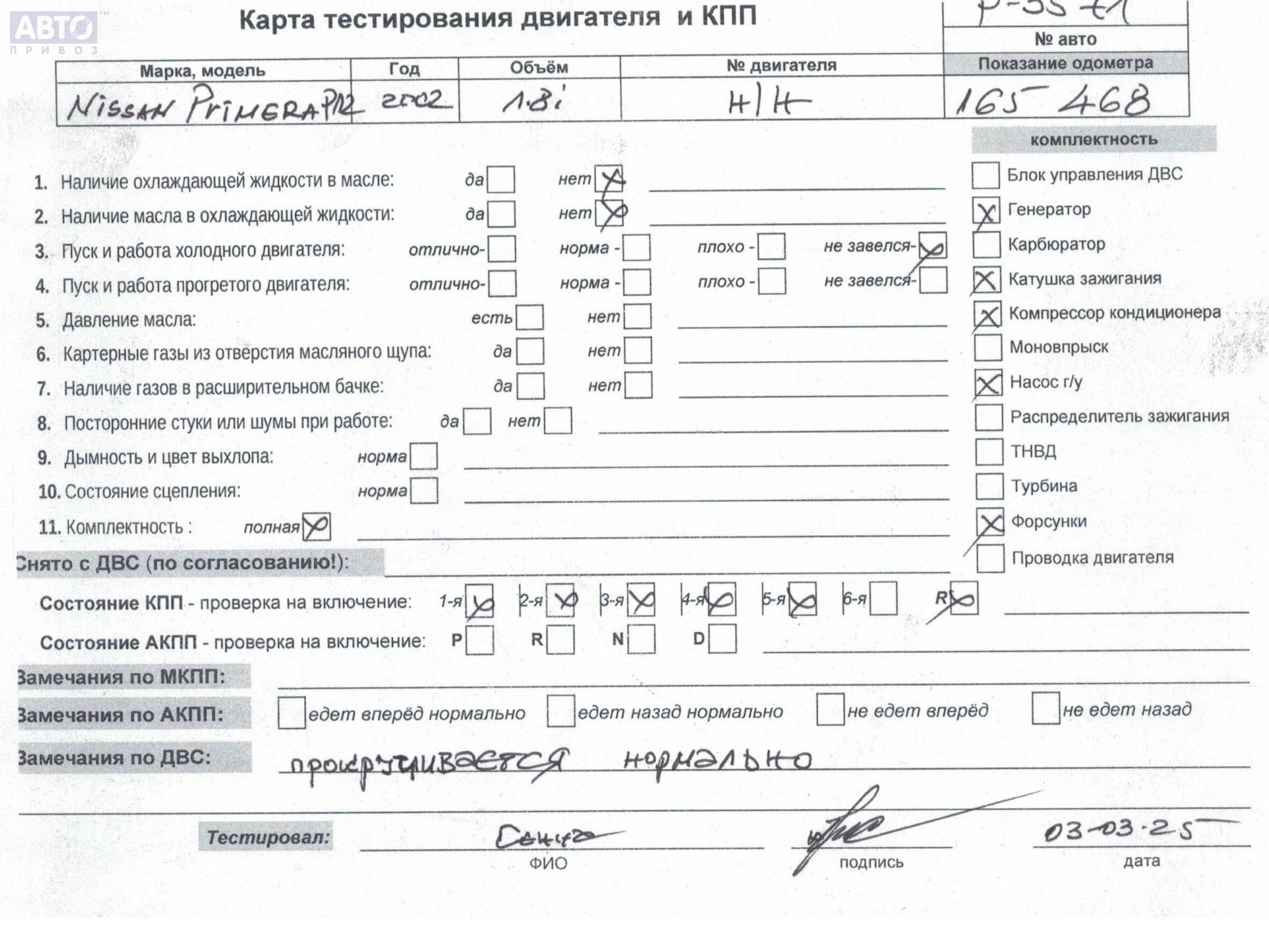 | Марка / Модель / Год: | Nissan Primera P12 (2002-2008) 2002 |