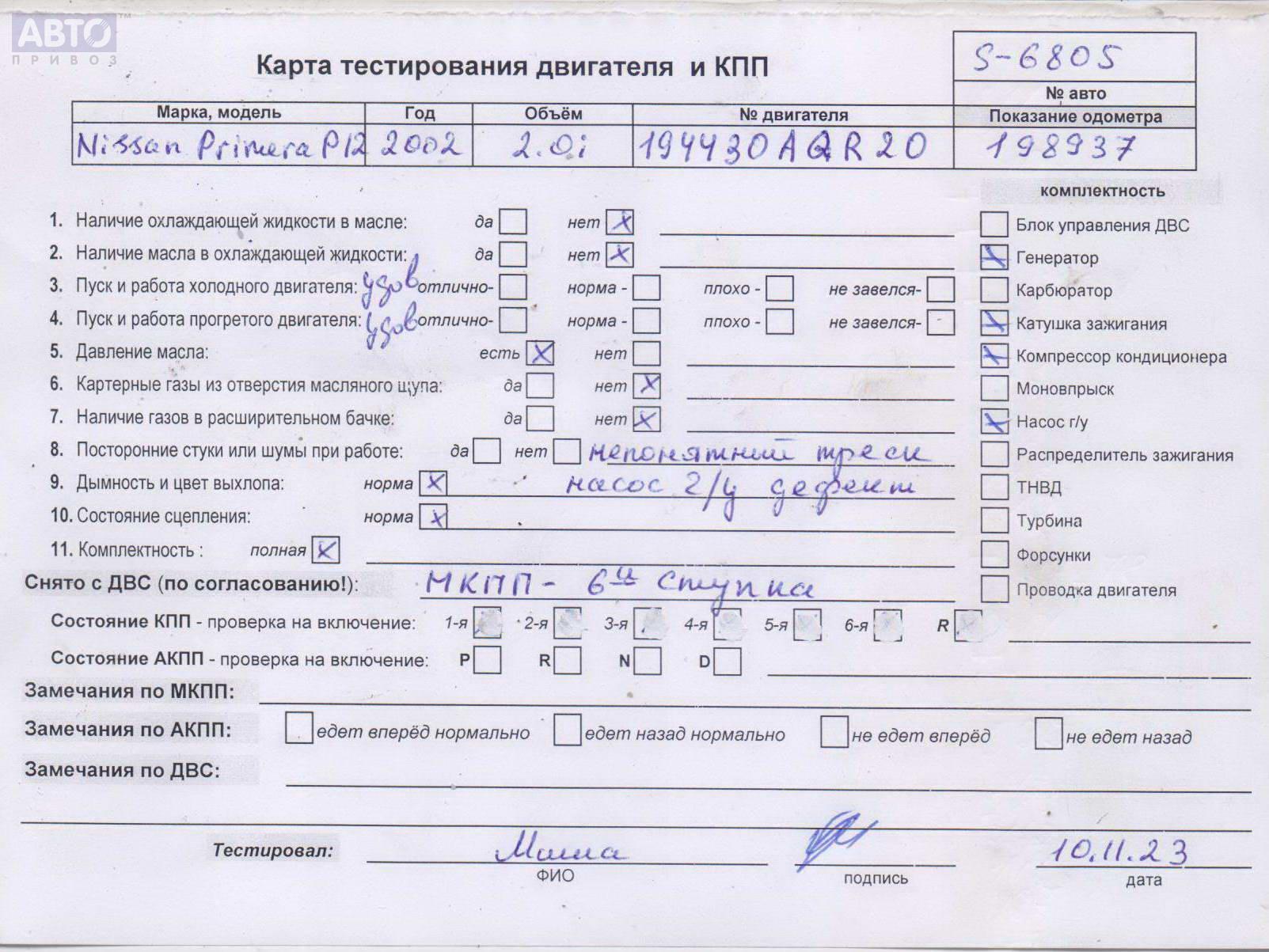 | Марка / Модель / Год: | Nissan Primera P12 (2002-2008) 2002 |