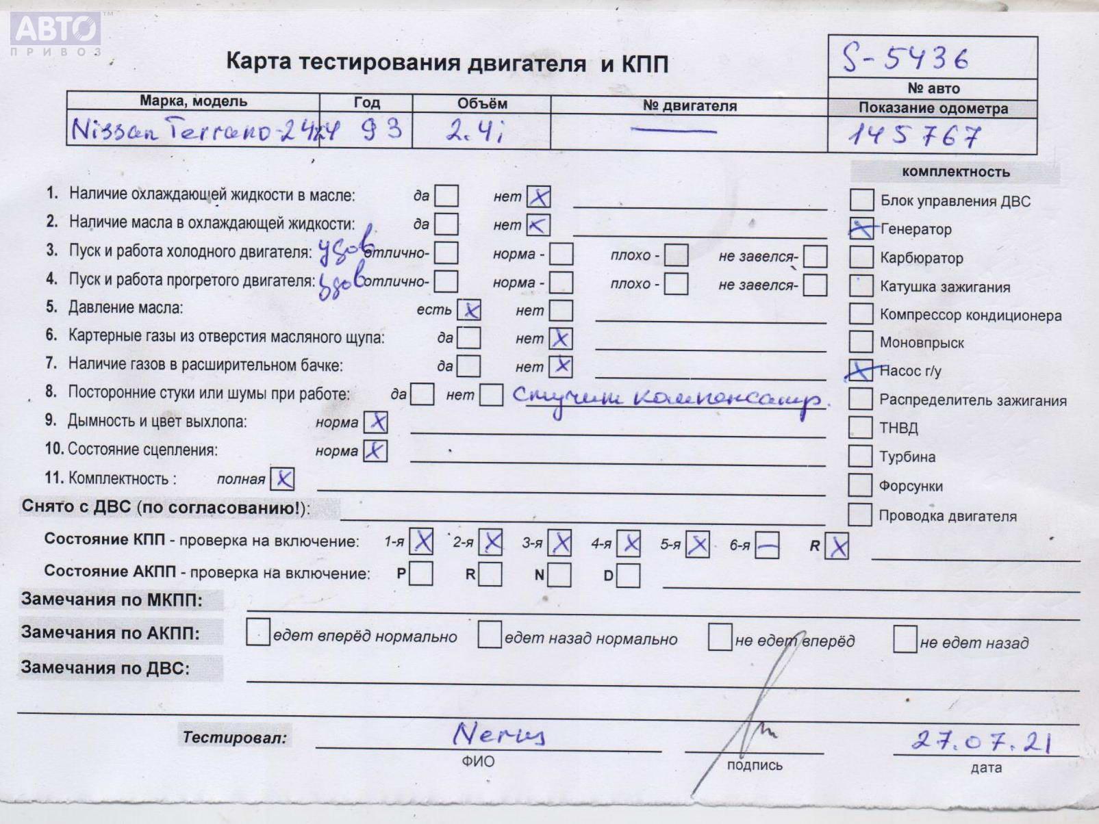 | Марка / Модель / Год: | Nissan Terrano II (1993-2006) R20 1993 |