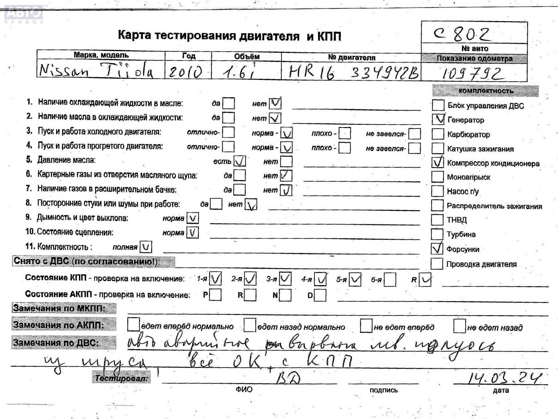 | Марка / Модель / Год: | Nissan Tiida 2010 |