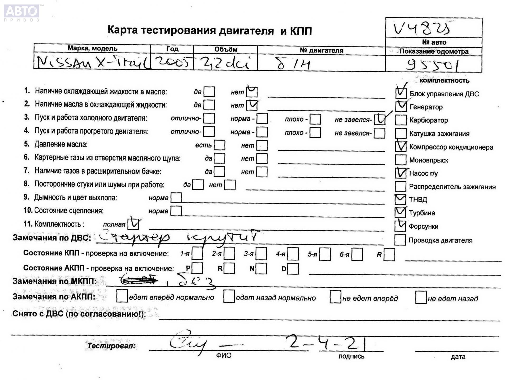 | Автомобиль / VIN: | V4825 JN1TENT30U0137991 |