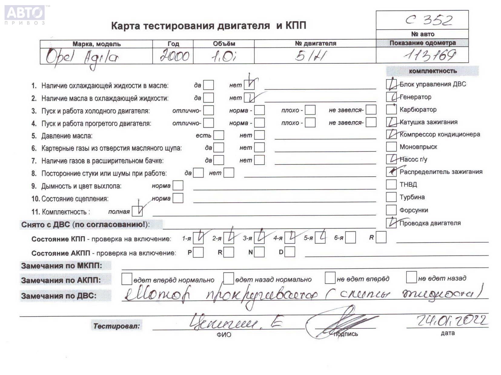 | Марка / Модель / Год: | Opel Agila A (2000-2007) 2000 |