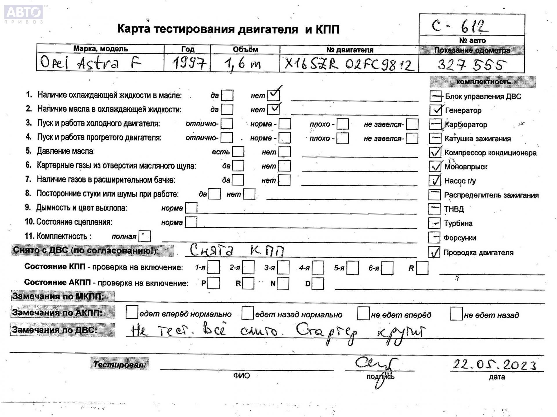 | Марка / Модель / Год: | Opel Astra F (1991-1998) 1997 |