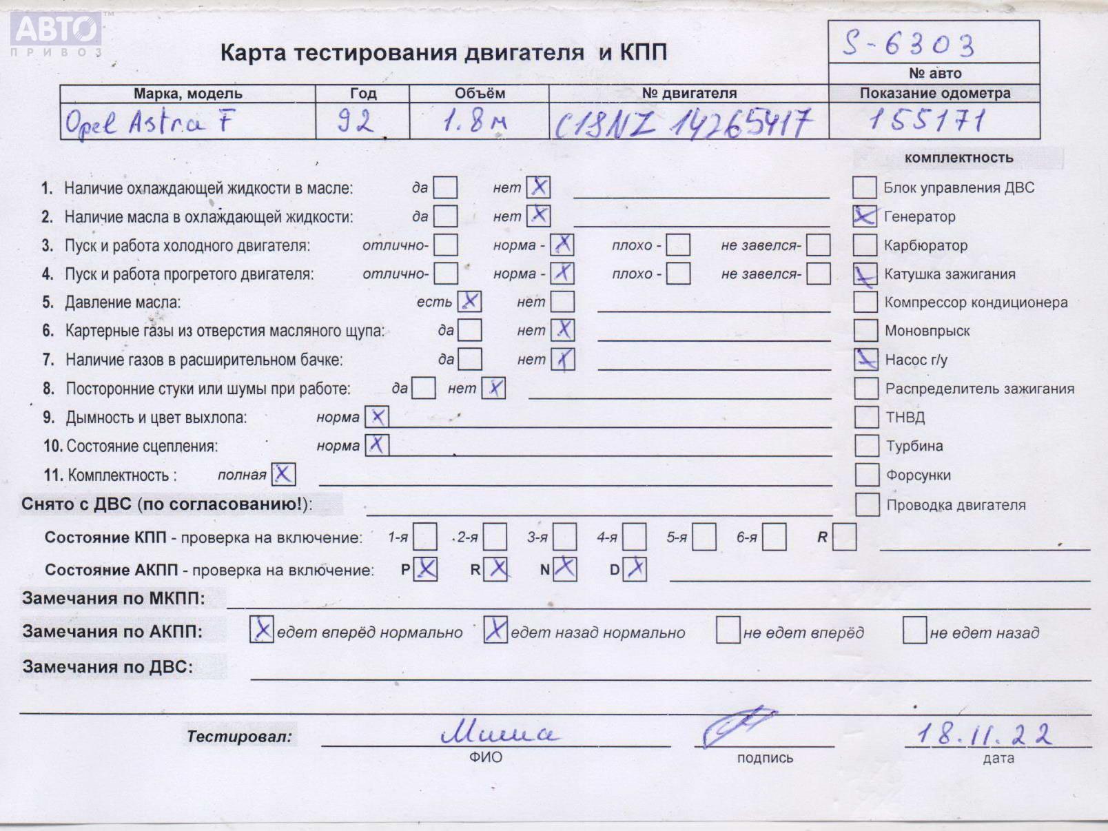 | Марка / Модель / Год: | Opel Astra F (1991-1998) 1992 |