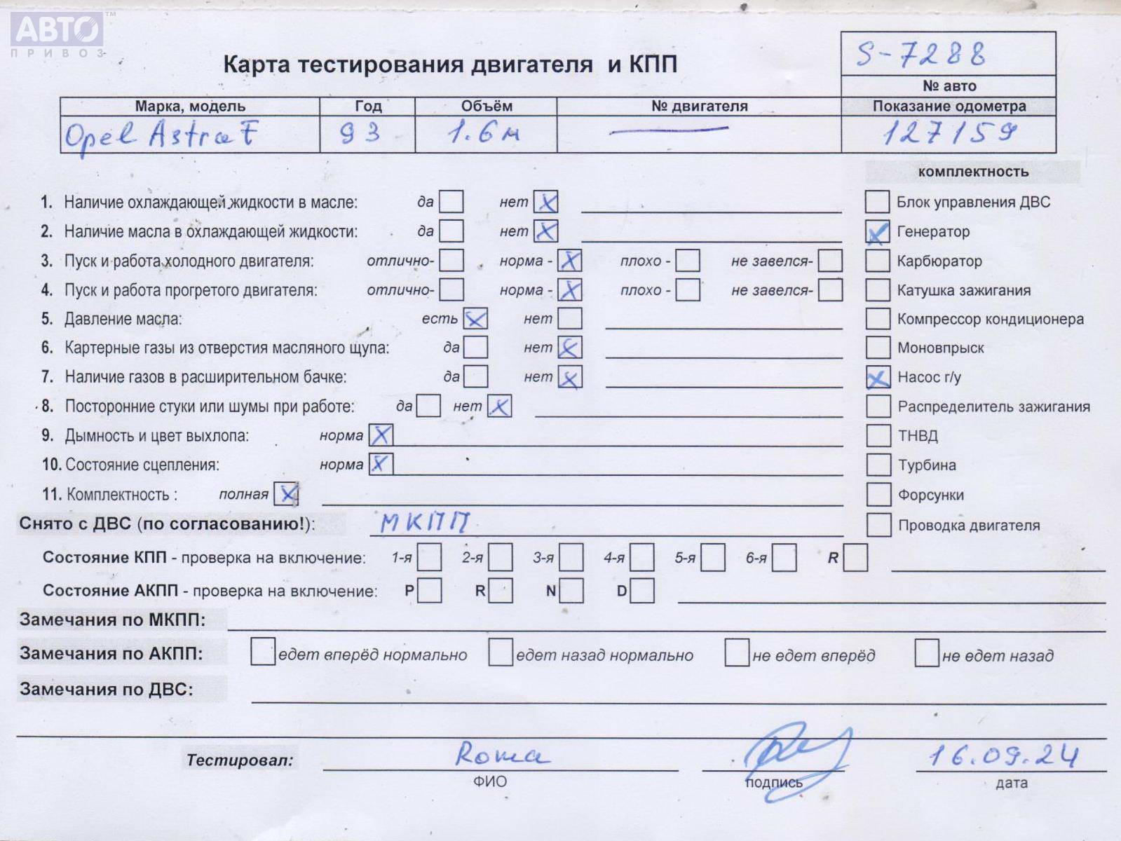 | Марка / Модель / Год: | Opel Astra F (1991-1998) 1993 |