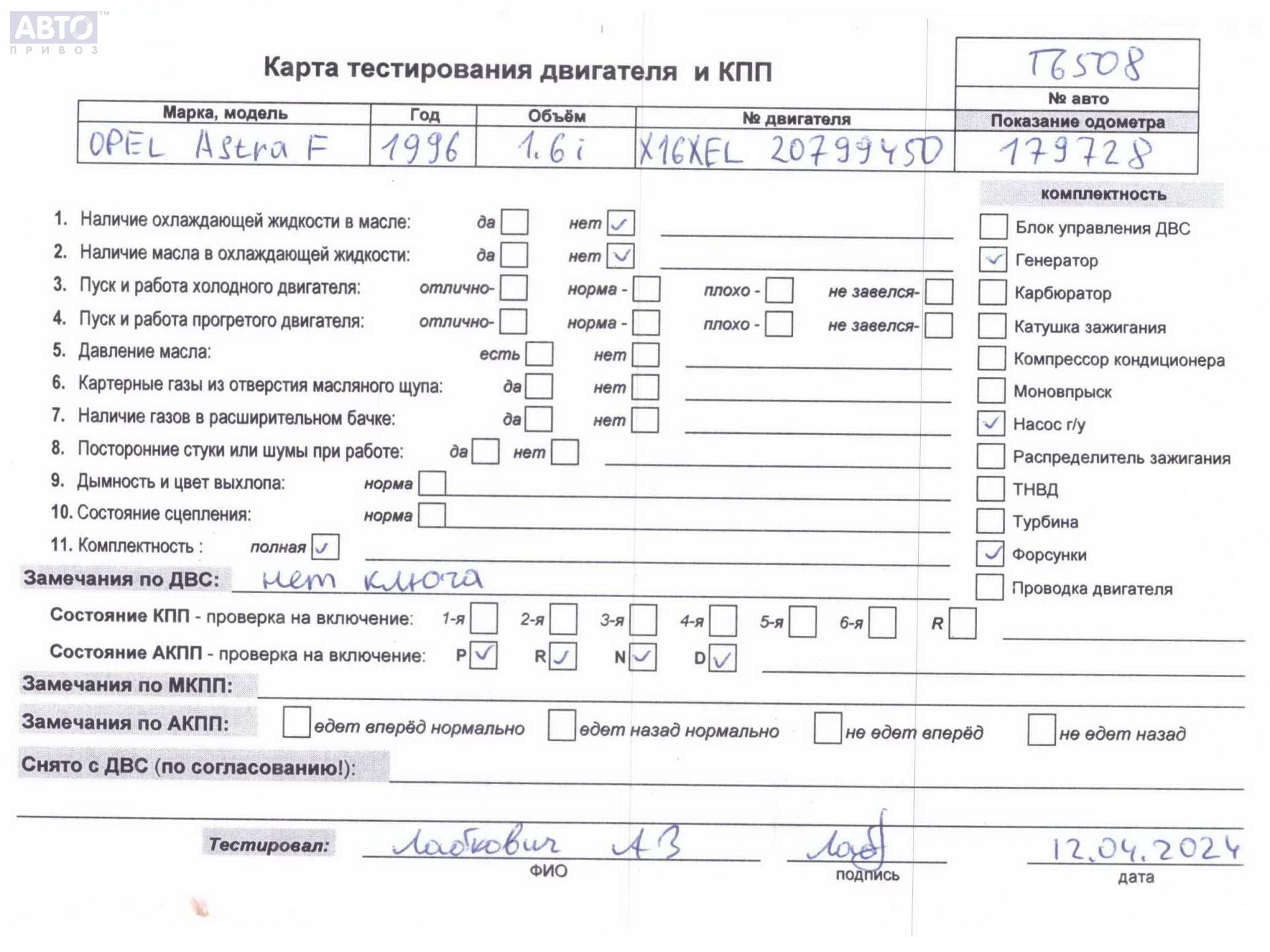 | Марка / Модель / Год: | Opel Astra F (1991-1998) 1996 |