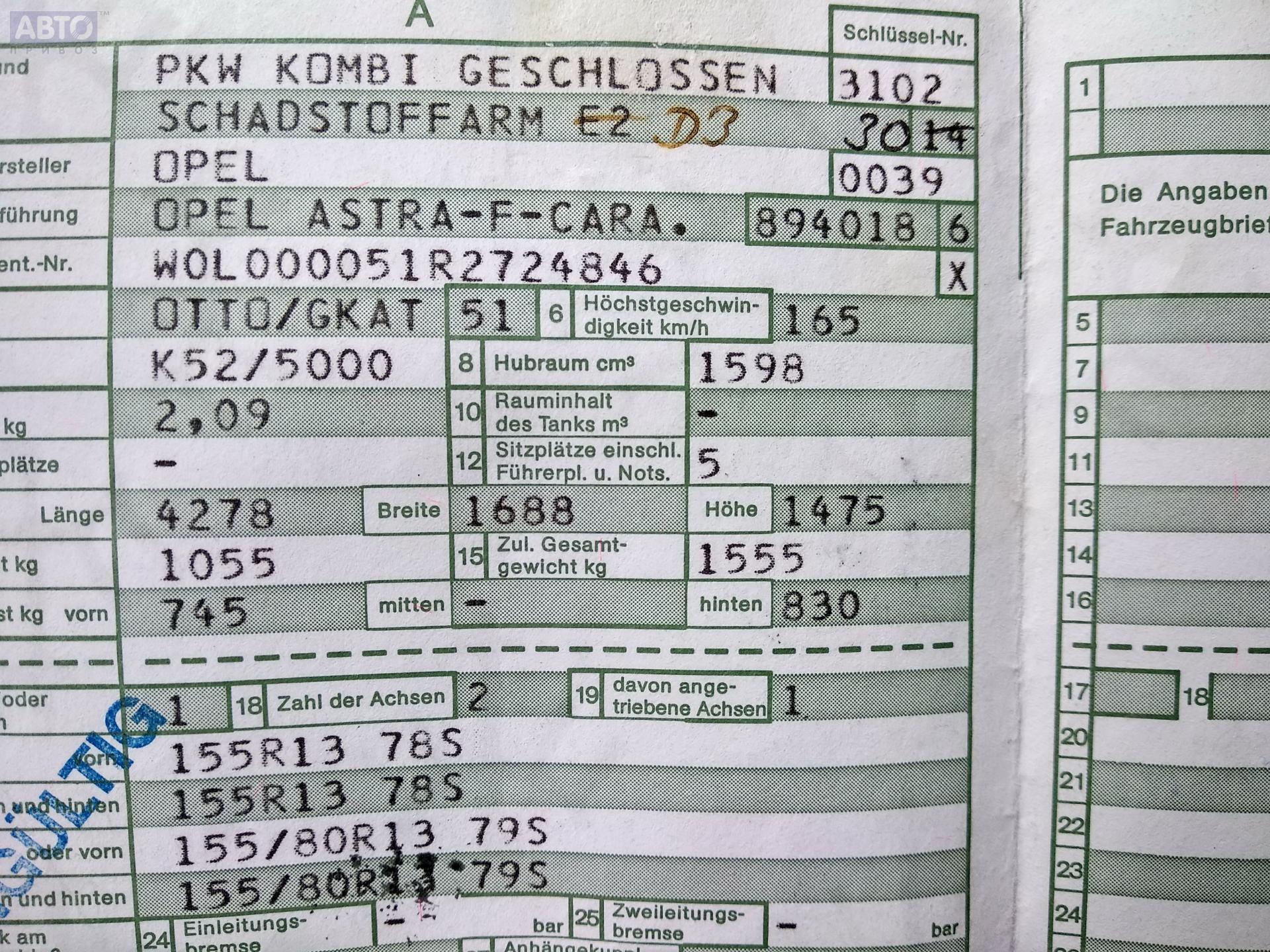 | Марка / Модель / Год: | Opel Astra F (1991-1998) 1994 |