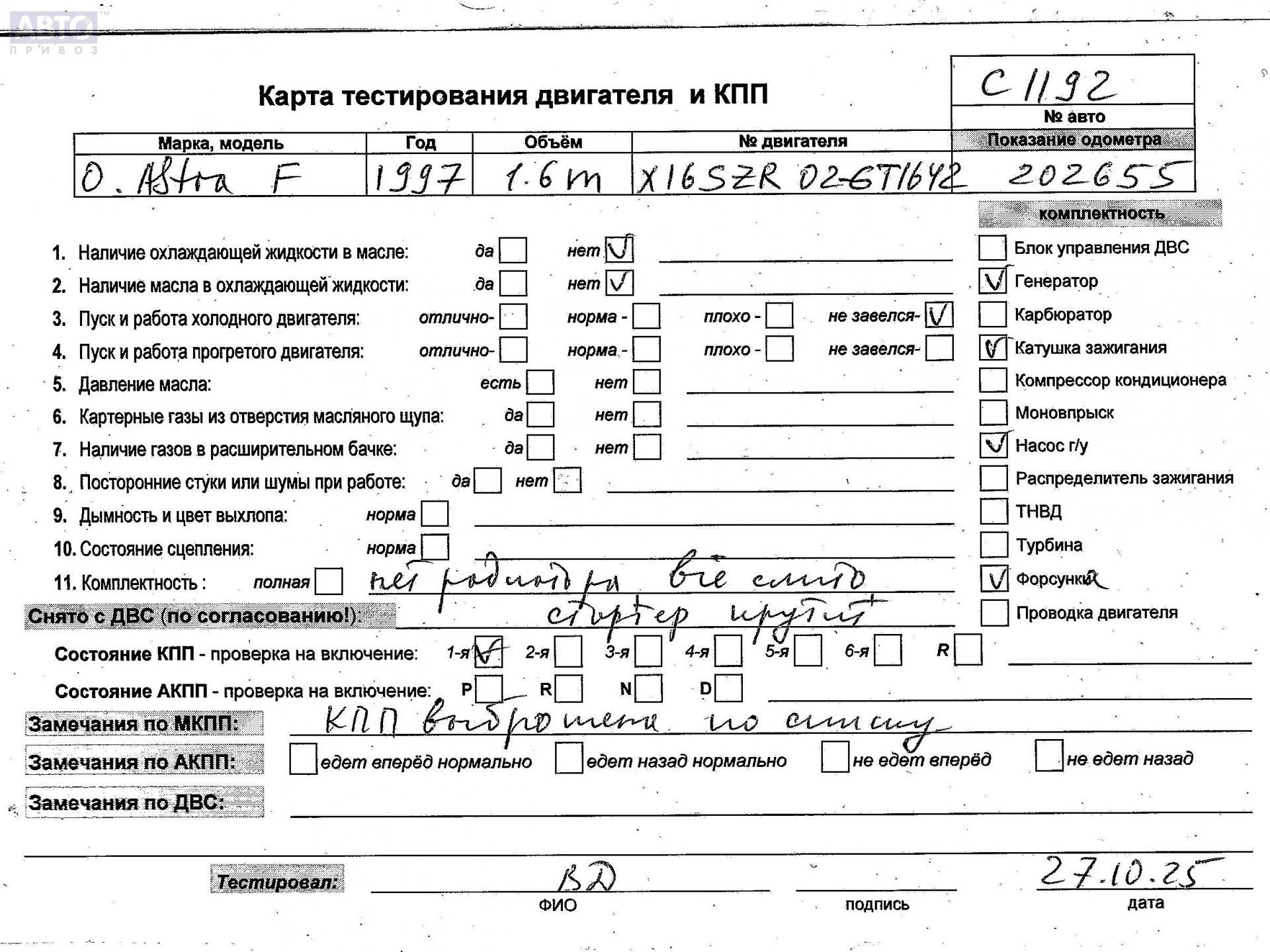| Марка / Модель / Год: | Opel Astra F (1991-1998) 1997 |