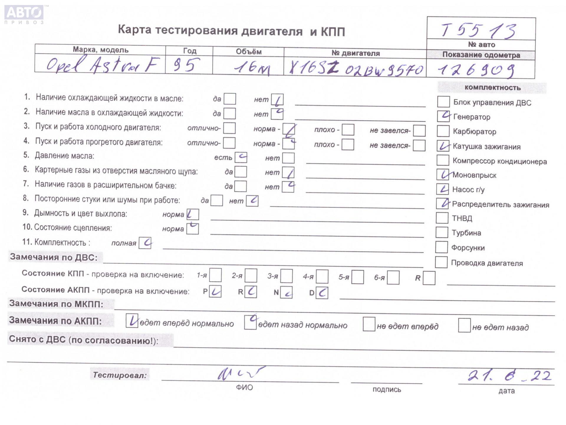 | Марка / Модель / Год: | Opel Astra F (1991-1998) 1995 |
